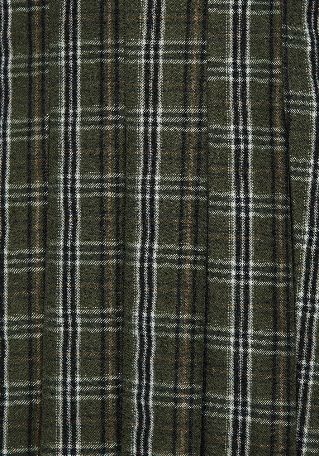 Morning has broken- Green check pleated mico-mini skirt - High-rise fit in a micro mini length - Sleeve length/ neckline/ hems - Flat waistband with a button & zipper fastening at the side - Earthy green plaid woven fabrication - Box pleats add volume & movement to skirt - Team with thick tights & boots in colder weather - Add some prep to your step 90% polyester, 9% viscose,1% elastane