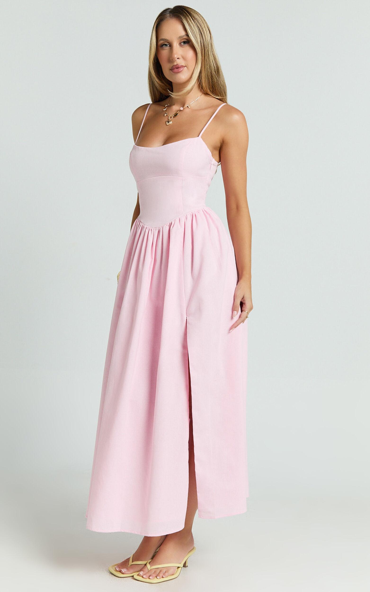 Transform your look with the Morris Midi Dress, a stunning piece that effortlessly marries comfort with unbeatable style. Embrace the beauty of simplicity and sophistication with this pink linen and cotton blend dress, designed to flatter and empower with every step you take.Product Details:Zips detailInner liningFit & flareLinen materialStraight necklineCasual wearMidi lengthSleevelessSize and FitSize S / 8 length: 115cm / 45.28inStudio model is wearing size XS / 6 AU / 2 US / 6 UK / 34 EUStudio model's height is 170cm / 5'7''Material and CareLining: 100% Cotton Main Fabric: 80% Cotton, 20% LinenNo StretchNatural FibresThe main fabric of this product is made from 100% Natural Fibres. Whilst some of these fibres still have detrimental impacts in their supply chain, Natural Fibres have a reduced overall impact compared to a raw polyester.