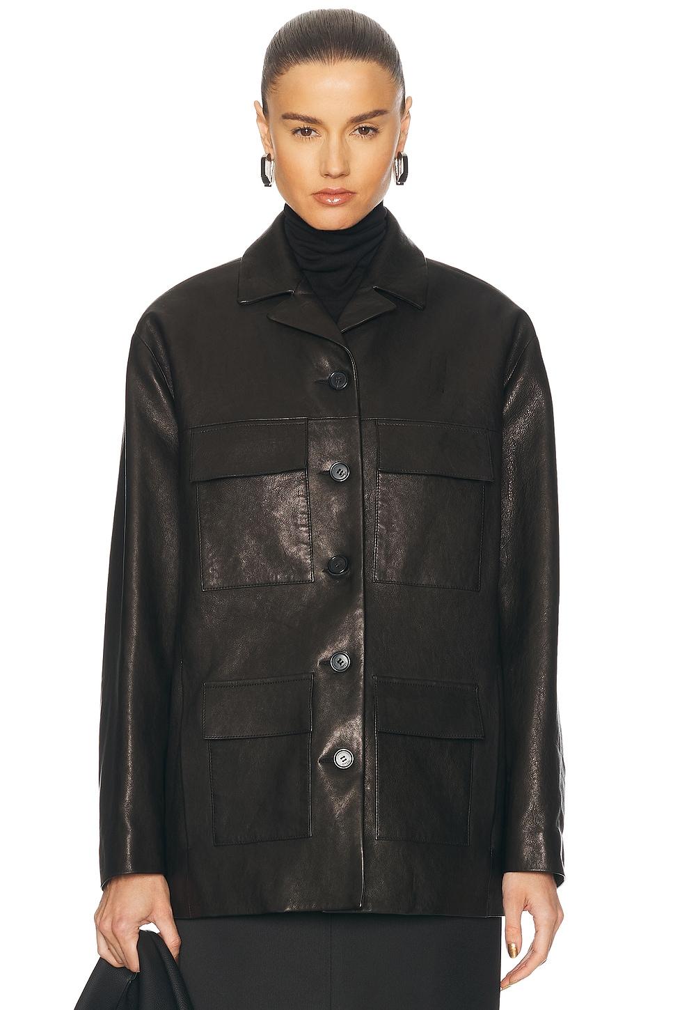 jacketSelf: 100% lambskinLining: 100% cupro / Made in Romania / Professional leather cleaning only / Front button closure / 4-front flap pocket styling / Genuine leather / Our Style No. KTAH-WO86 / Manufacturer Style No. 6157729 / Model is wearing size 2.