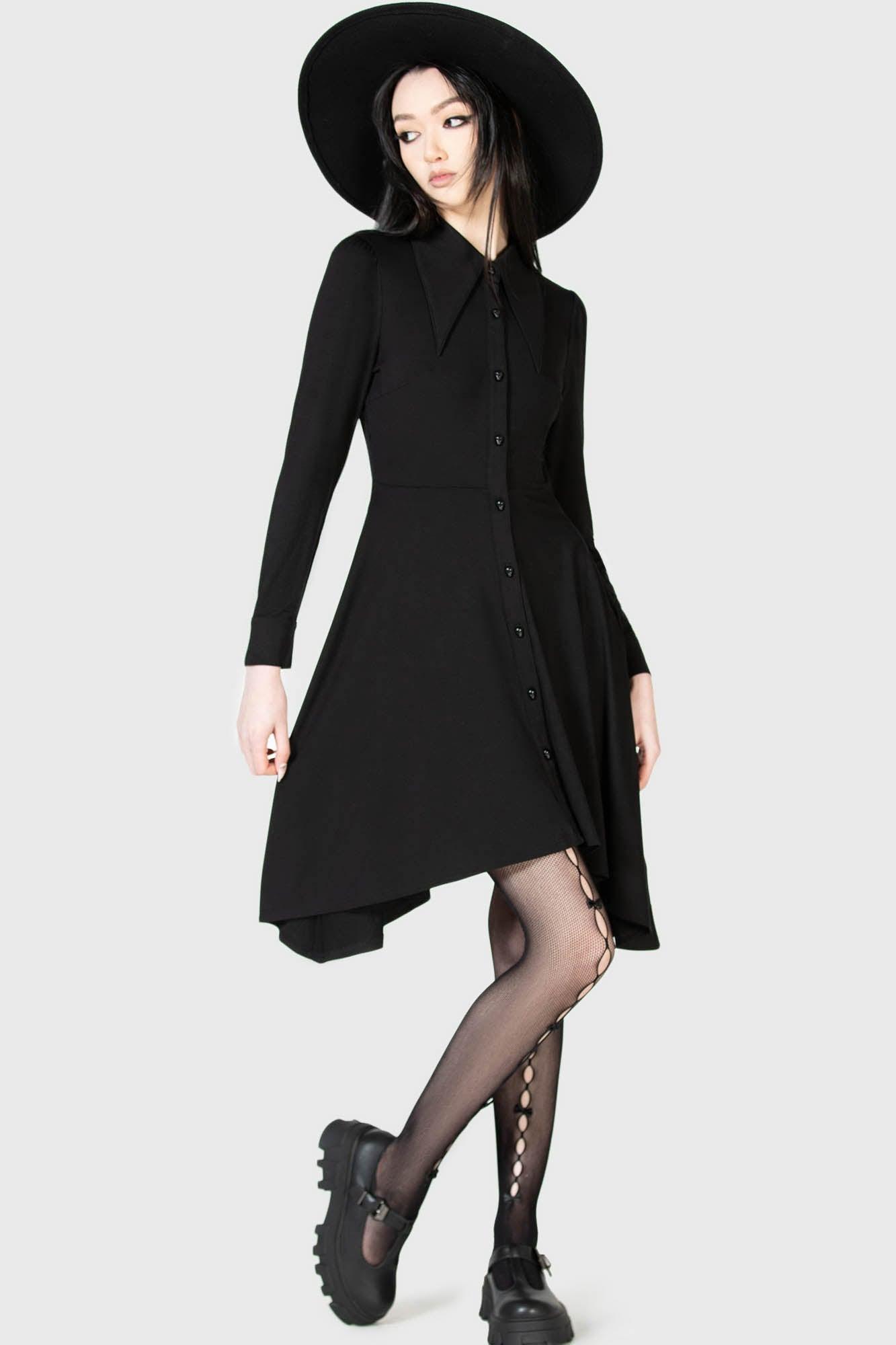 MORWENNA.- Soft, stretch fabric.- Statement skull button up closure.- XL collar.- Hanky hem.- Long, cuffed sleeves.- Fitted.With KILLSTAR branding, 94% Viscose, 6% Elastane.Machine wash cold (30°c) / Do not bleach / Do not tumble dry / Iron at low temperature / Do not dry clean. Imported.