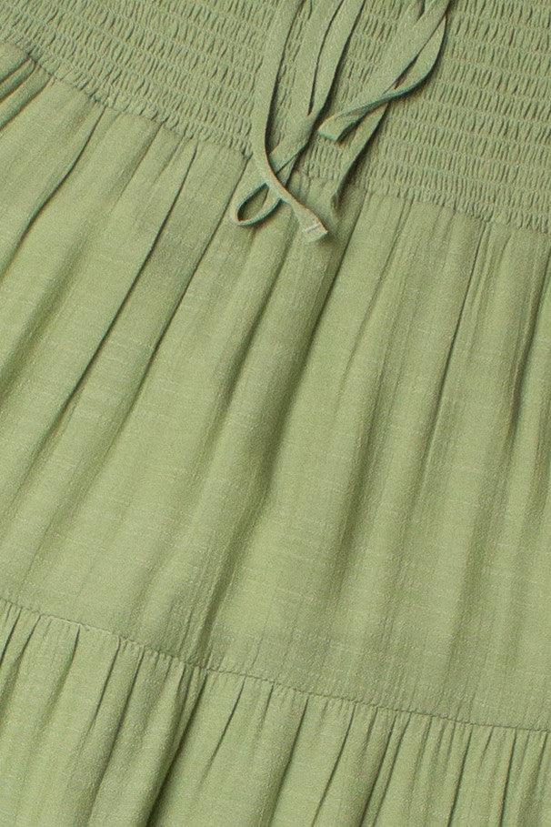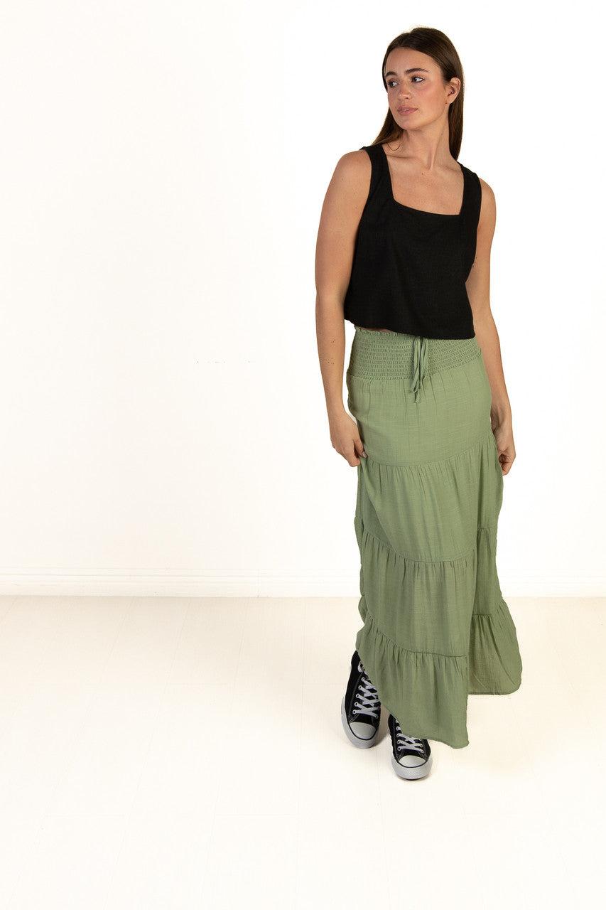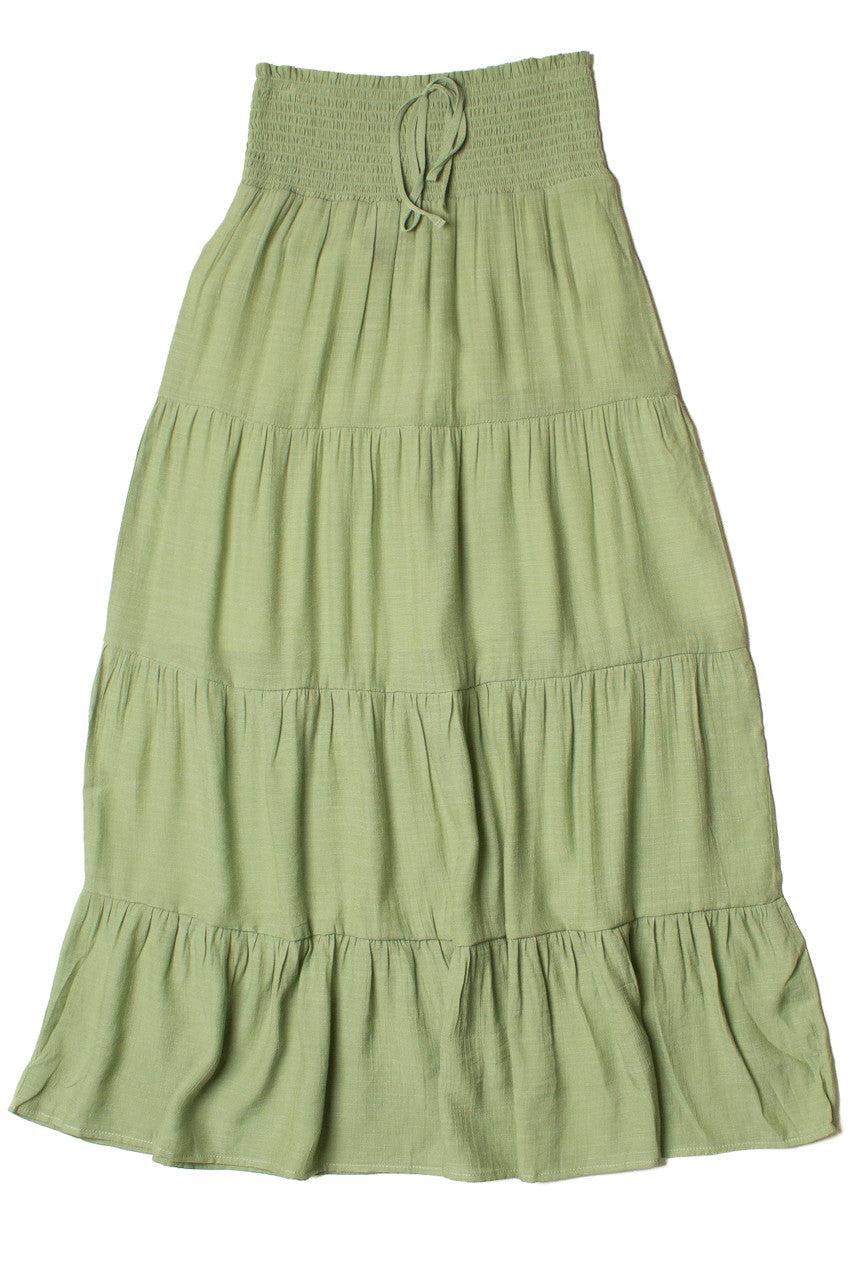 Moss Green Smocked Waist Maxi Skirt