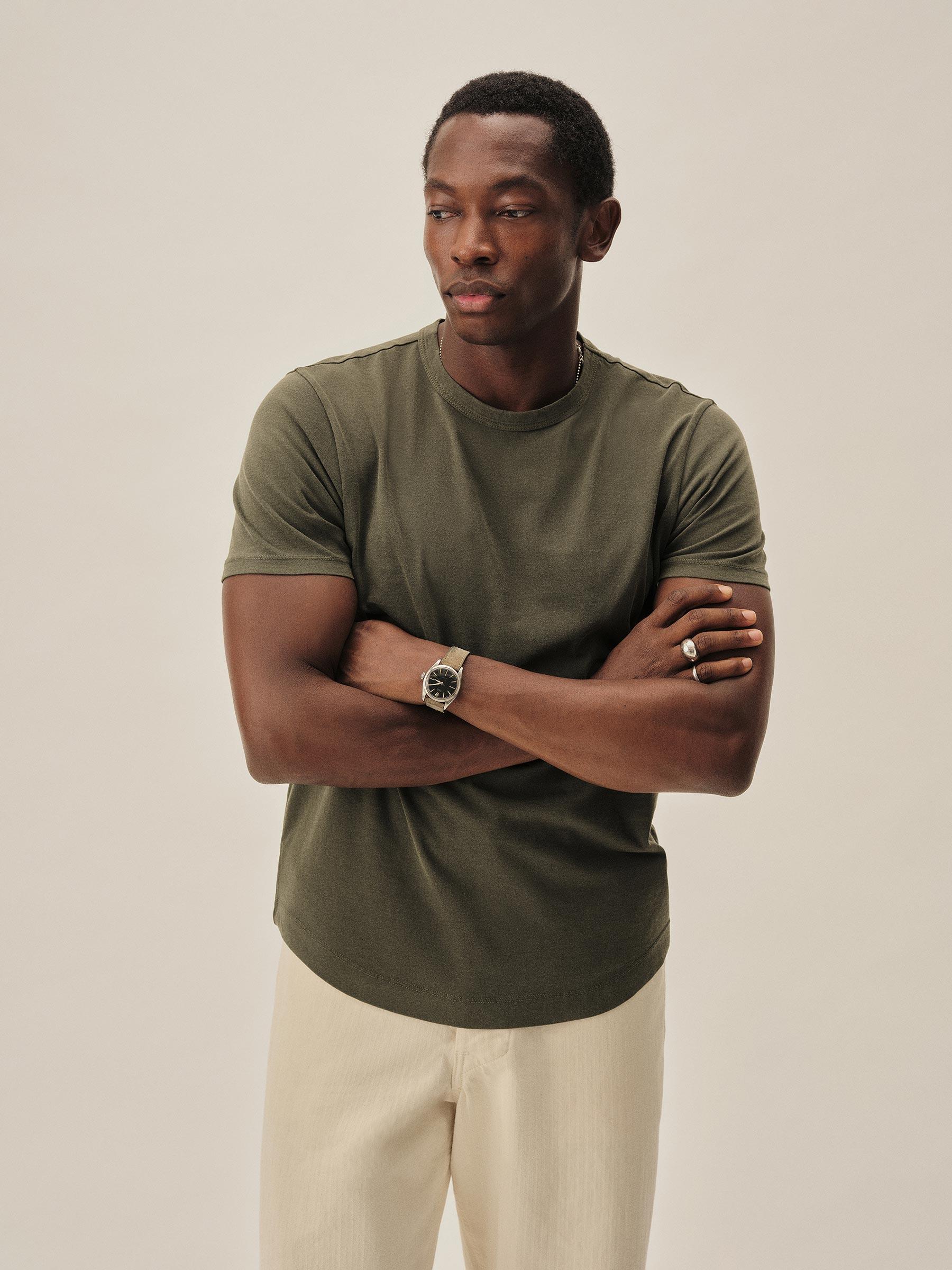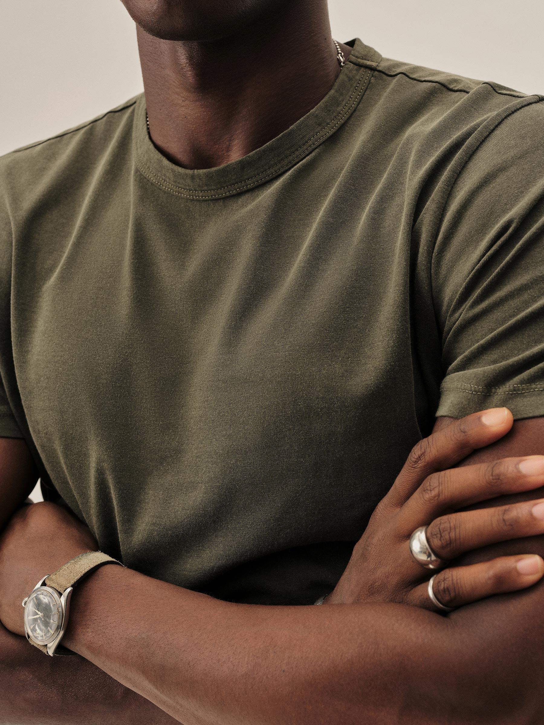 Moss Green Venice Wash Pima Curved Hem Tee - Our signature curved hem tee in premium, long-staple USA-grown Supima cotton. Made at BM Knitting Mills in Mohnton, PA.