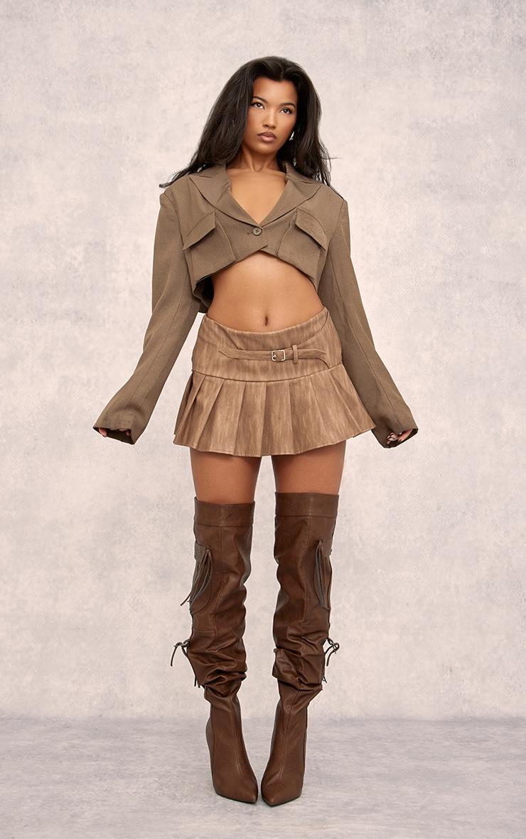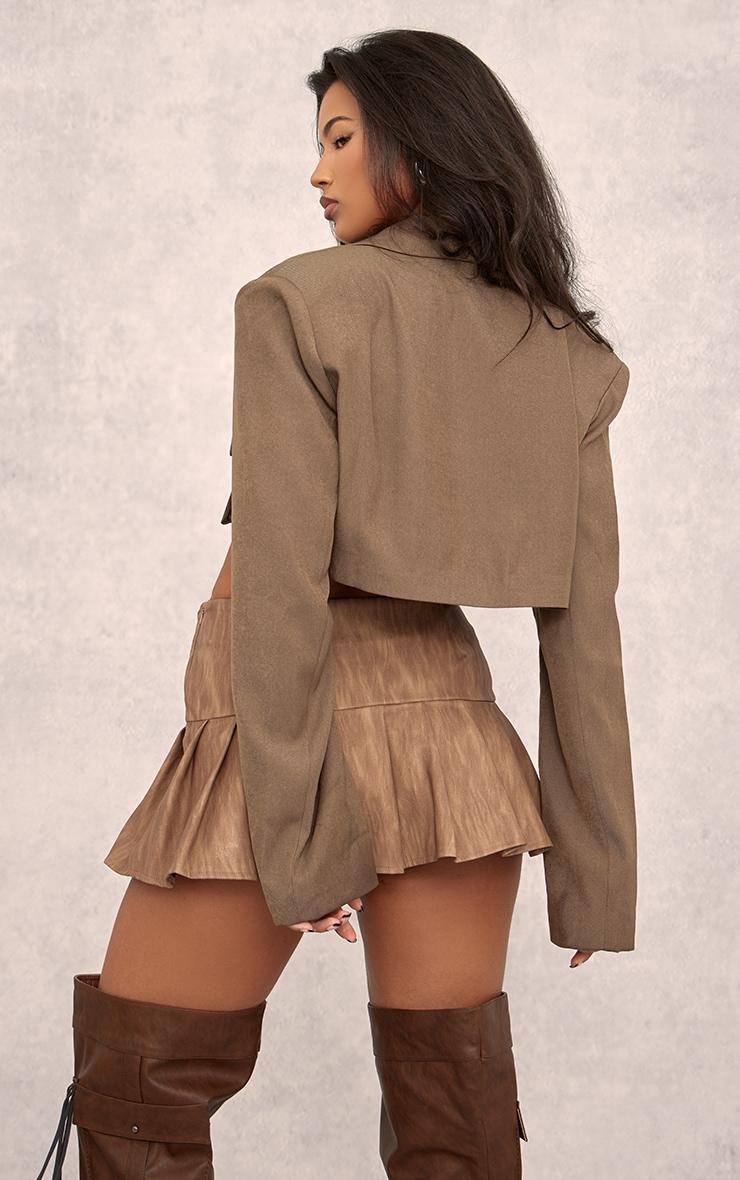 Bring all the chic vibes to your weekend outfit with this moss khaki pocket detail super cropped blazer. Brought to you in a moss khaki hue material with pocket detailing and a super cropped fit, how can you resist? Style this super cropped blazer with a mini skirt and knee length heeled boots for a look that is sure to have all eyes on you. Length approx 33cm/13inch (Based on a sample size UK 8) Model wears size UK 8/ EU 36/ AUS 8/ US 4Model Height - 5ft 6inchp]:!mb-4inch>Category: OuterwearProduct type: Fitted BlazerColor: Moss KhakiSleeves: LongOccasion: Day