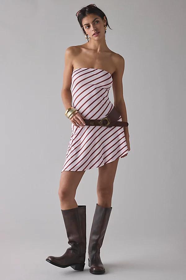 Oh-so-Y2K Motel mini dress designed in a strikingly striped fabric. Tube dress featuring a strapless neckline, drop waist bodice and an asymmetrical slanted hem for a modern finish. Style it with sandals or heels for a go-to summer look. Features Motel Kagari strapless asymmetric drop waist mini dress Tube top dress Strapless tube neckline Drop waist bodice Ruched waistline Asymmetrical slanted hem A-line fit Mini length Easy pull-on style Content + Care 100% Polyester Machine wash Imported Size