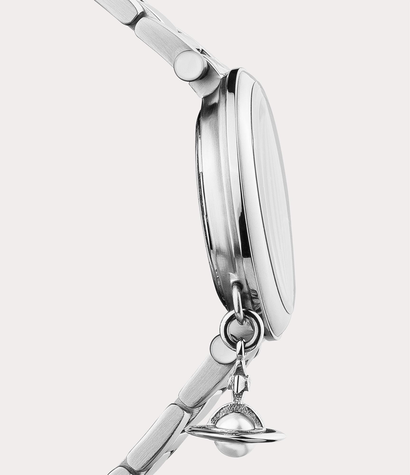 Designed with an iridescent dial and decorated with tonal Roman numeral indexes, the Mother Orb watch is finished with silver-tone plating.