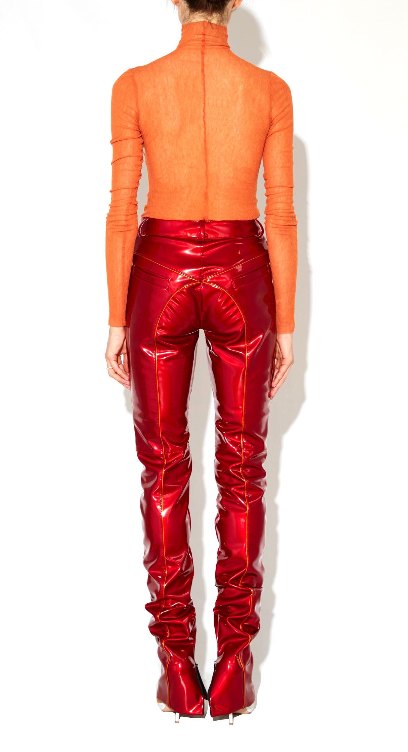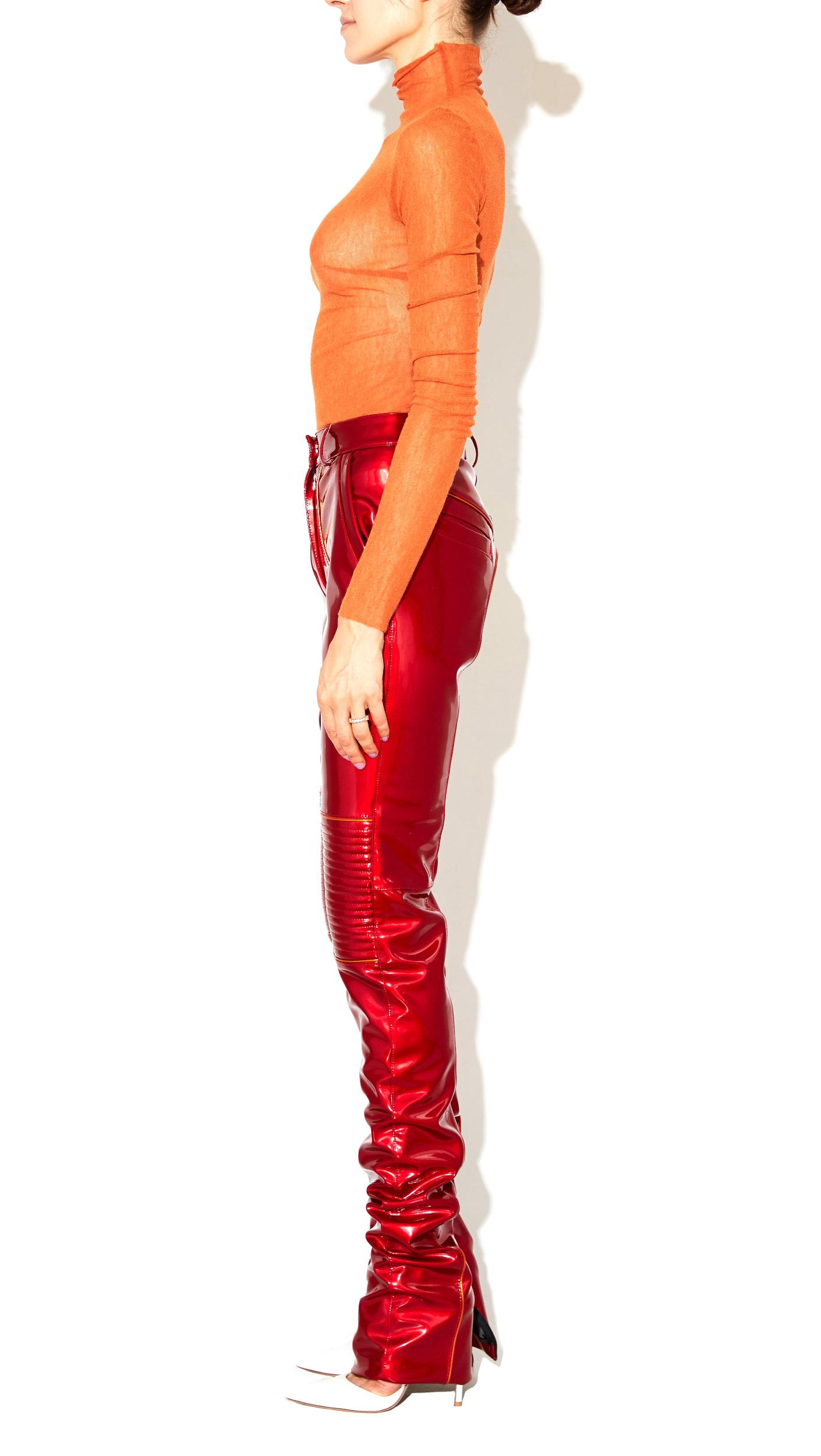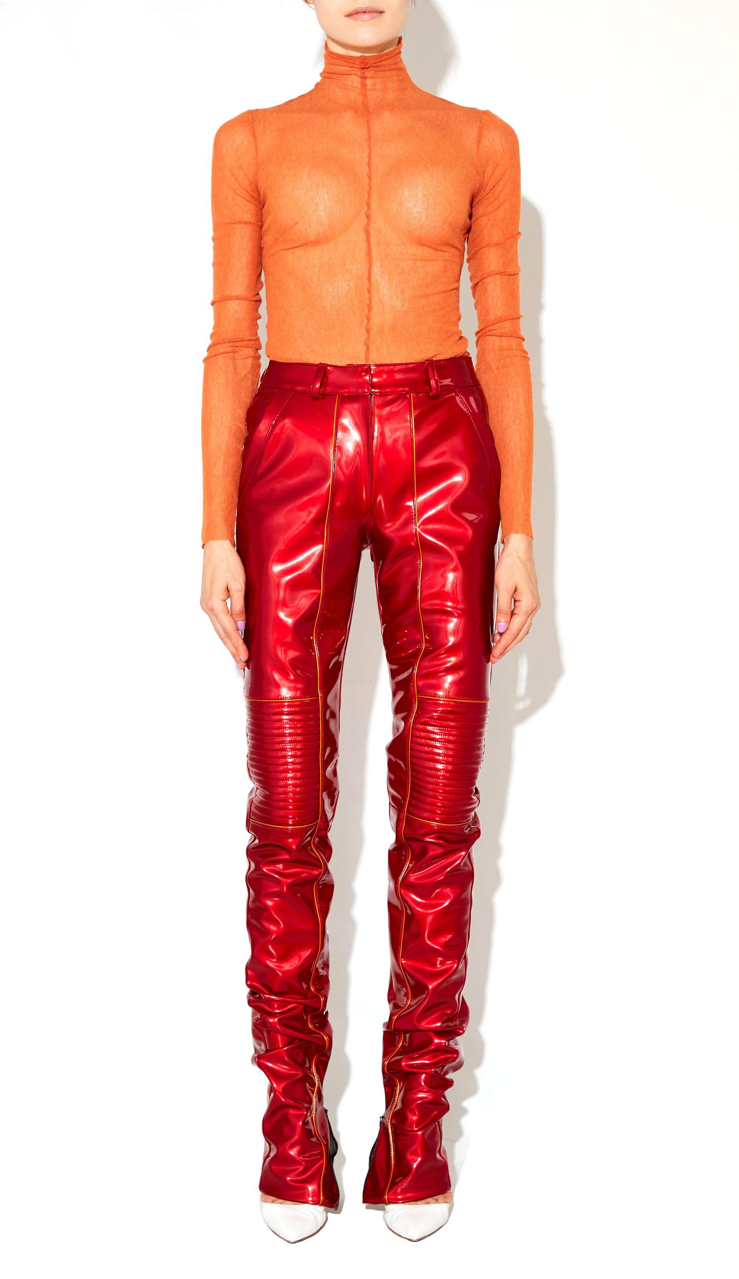 Our bestselling pant reinvented for the Fall Season. Self: 100% Vinyl PVC Manufactured in NYC Model is wearing a size XS