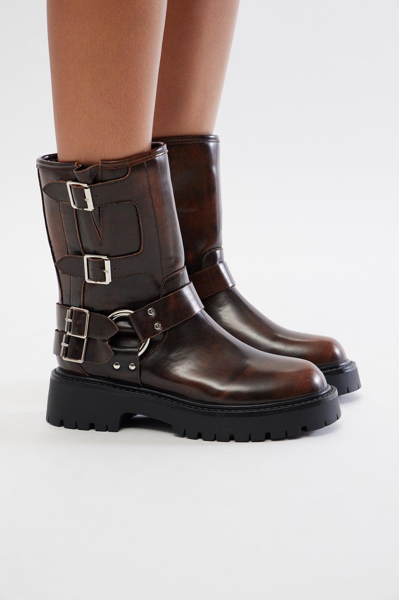 Motor Club Biker Boots - Brown/combo