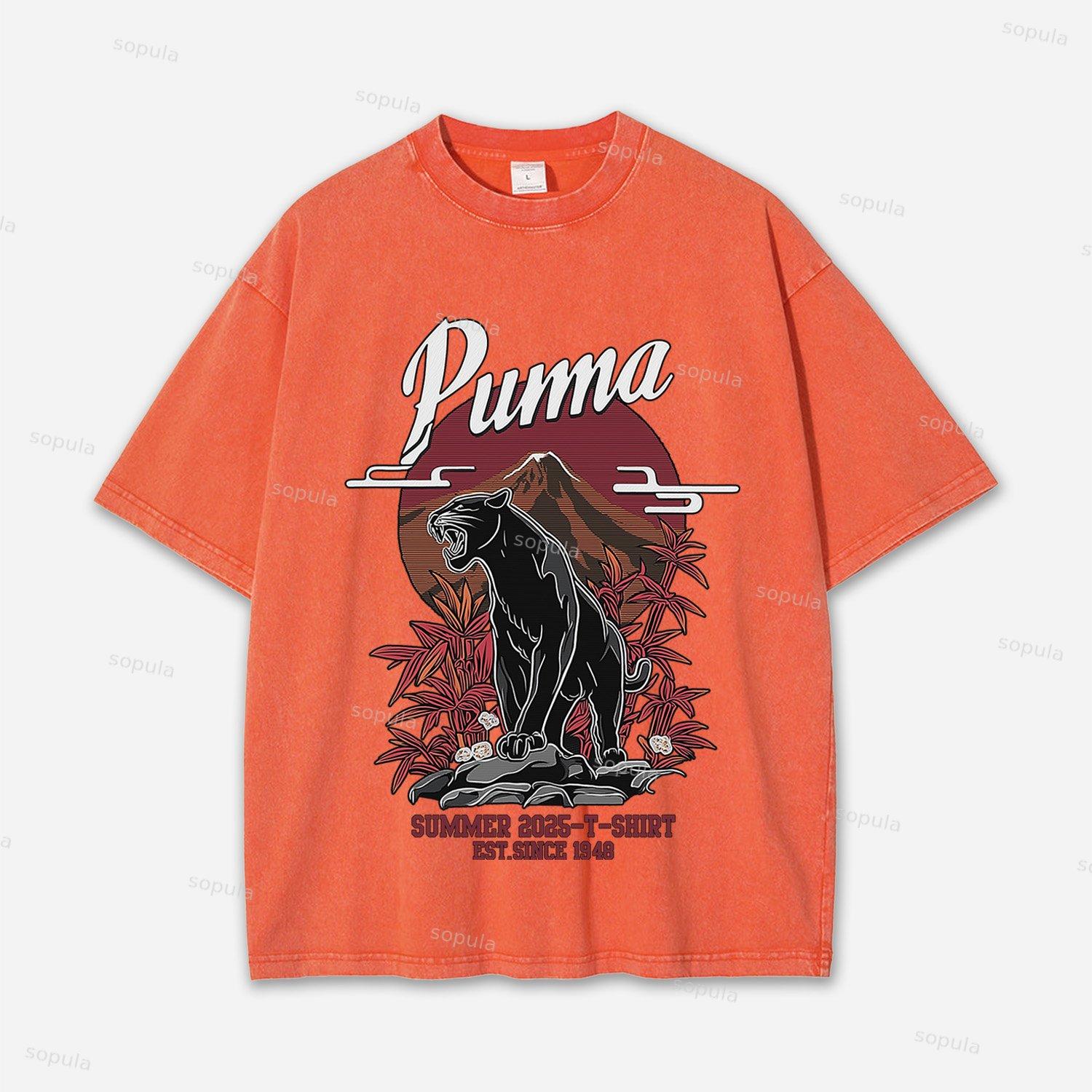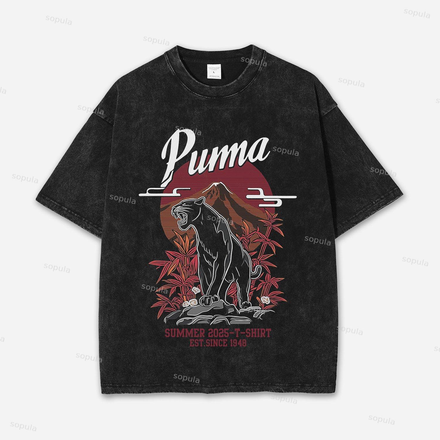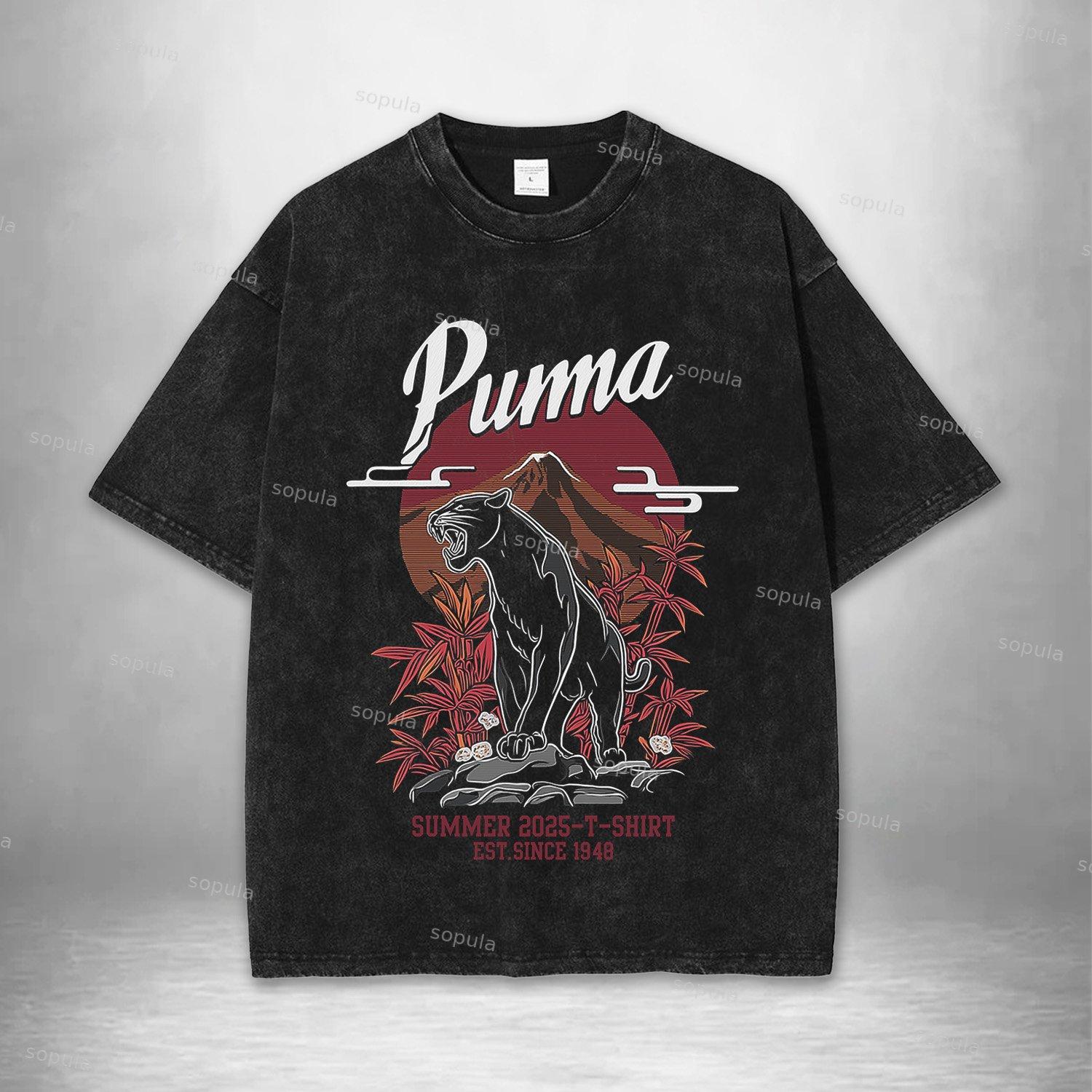 SPU: CP-222834-WJY Fabric Name: 100% Cotton Pattern: Mount Fuji Black Panther Process: Printed Style: Retro Length: Regular Collar: Round Neck Popular Elements: Washed Sleeve Type: Short Sleeve Occasion: Street, Daily Theme: Summer