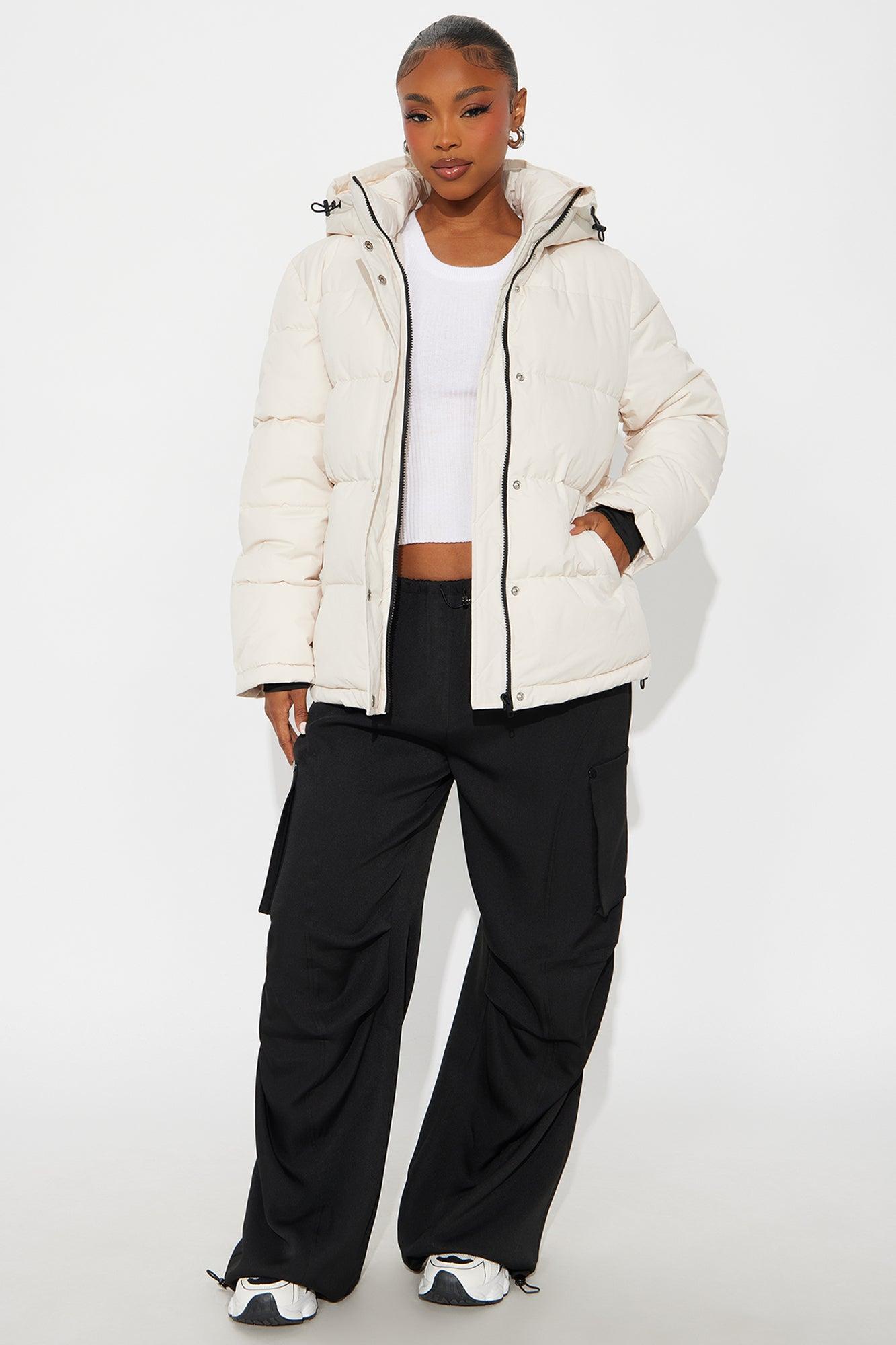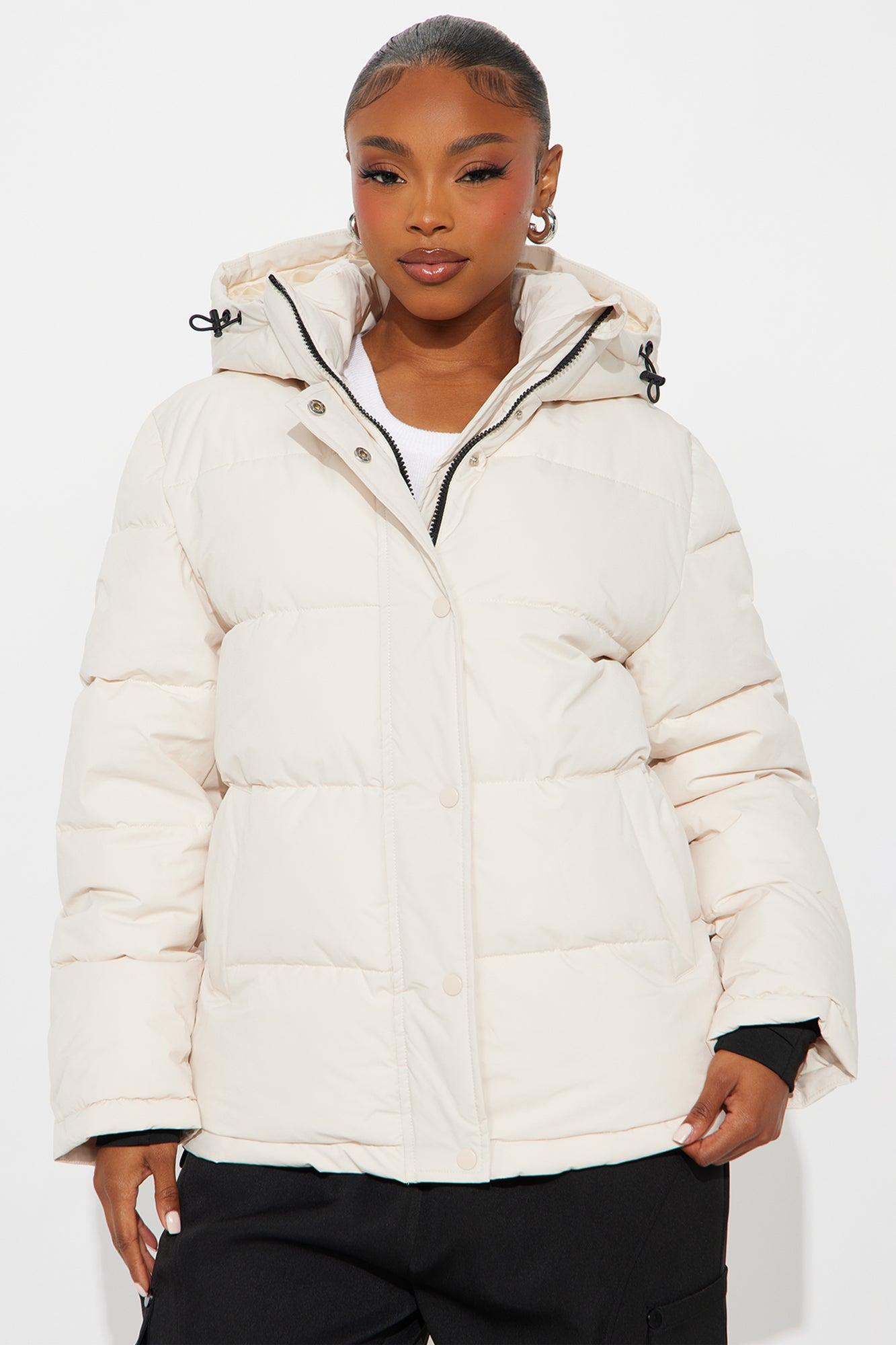 Available In Stone. Puffer Jacket Hooded Long Sleeves Button & Zipper Closure Pockets Thumbholes Fully Lined Shell/Lining/Filling: 100% Polyester Imported California Proposition 65WARNING: Cancer and Reproductive Harm - www.P65Warnings.ca.gov.