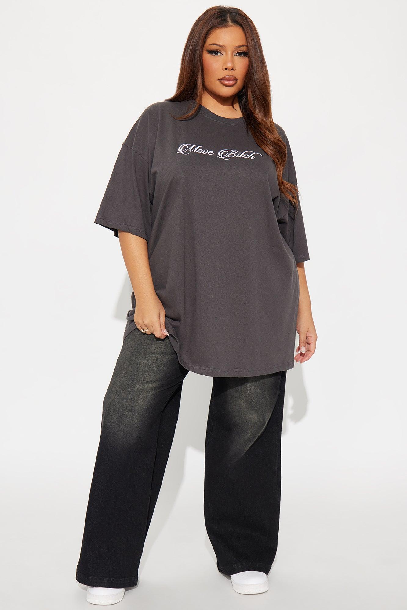 Move Bitch Oversize Short Sleeve Tee - Charcoal Female