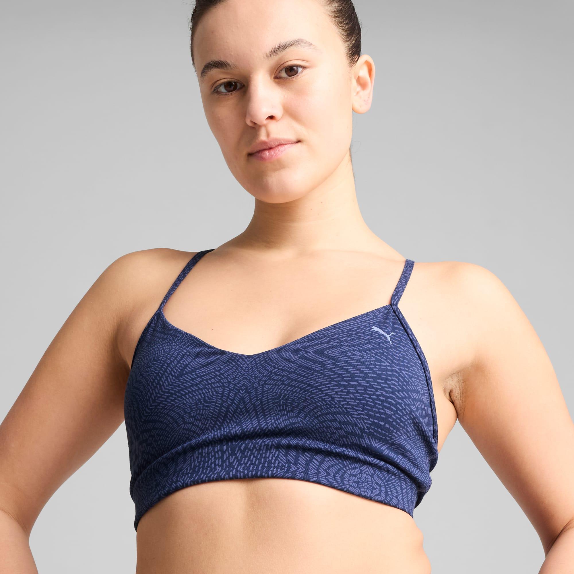Unleash your inner warrior with PUMA's CLOUDSPUN bra. Designed for all-day wear, it features dryCELL for moisture-wicking, low impact support, and adjustable straps for unrestricted movement. Stay confident and stylish from studio to street.Made with at least 50% recycled materialsdryCELL: Performance technology designed to wick moisture from the body and keep you free of sweat during exerciseCLOUDSPUN: Custom-milled performance poly/spandex blend, this fabric meets the highest performance standards while still feeling like an ultra soft cottonTight fitInterlock fabricRegular lengthPUMA branding details