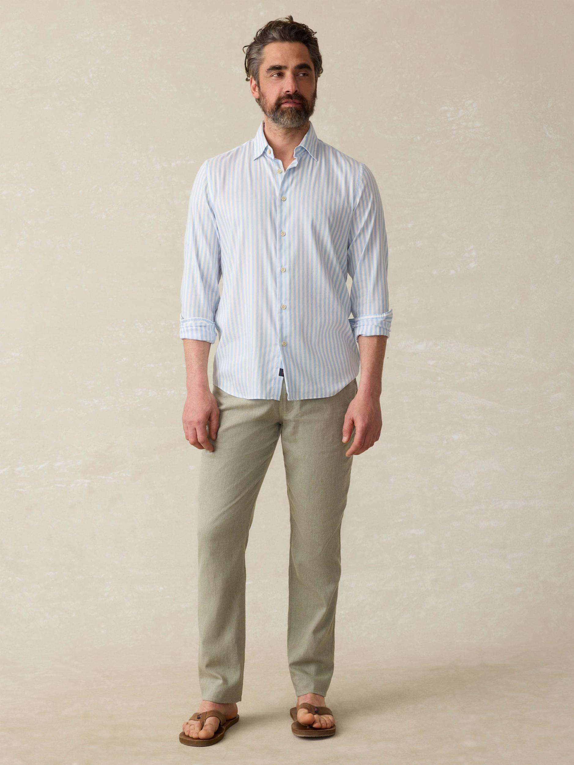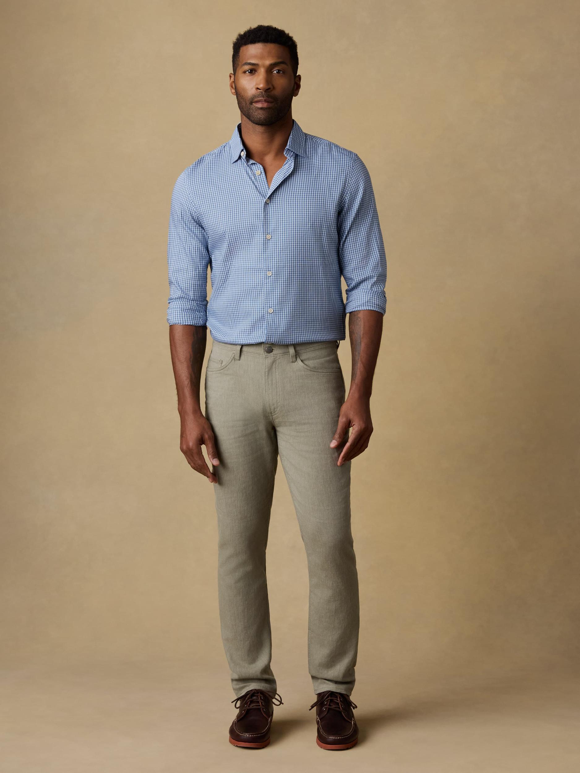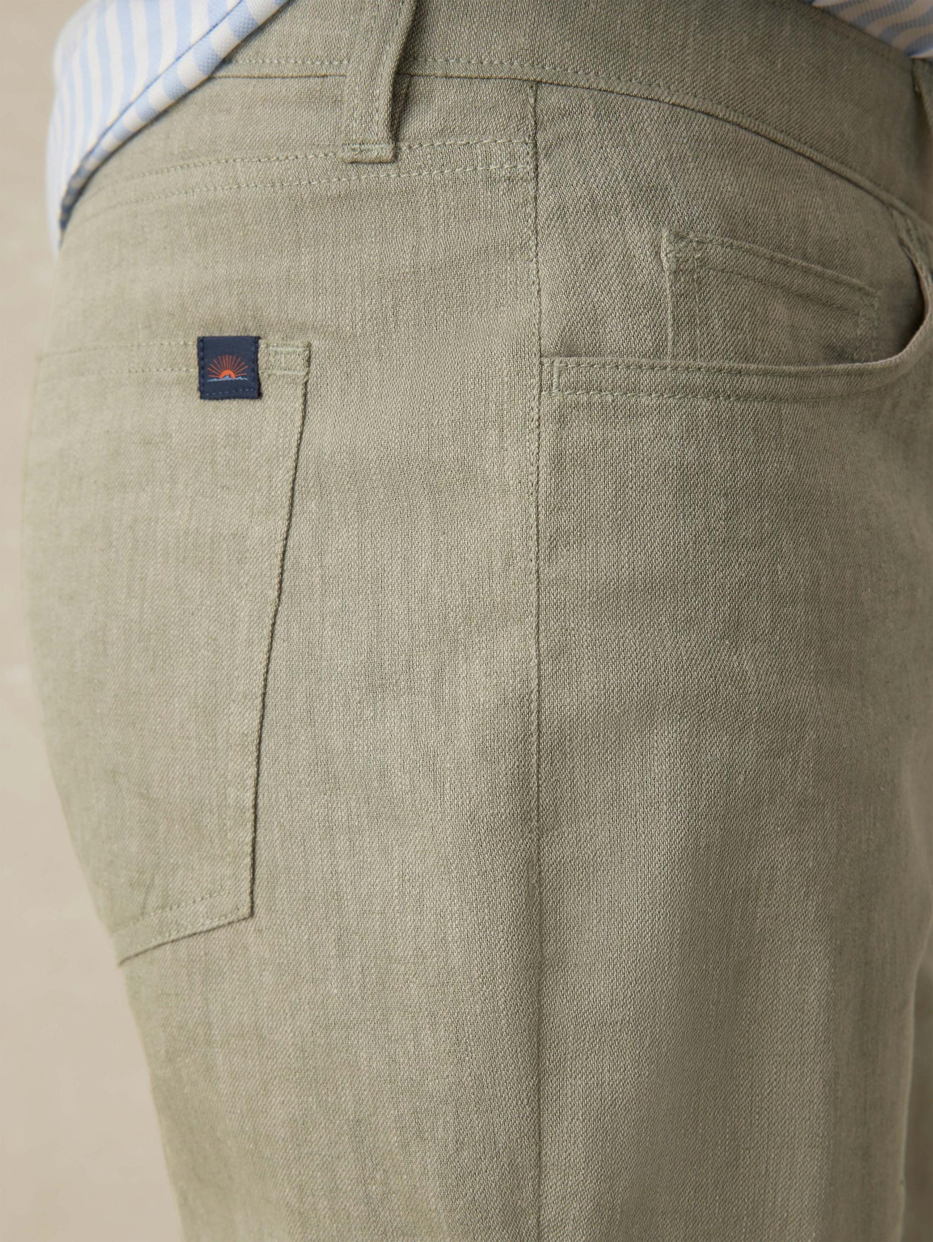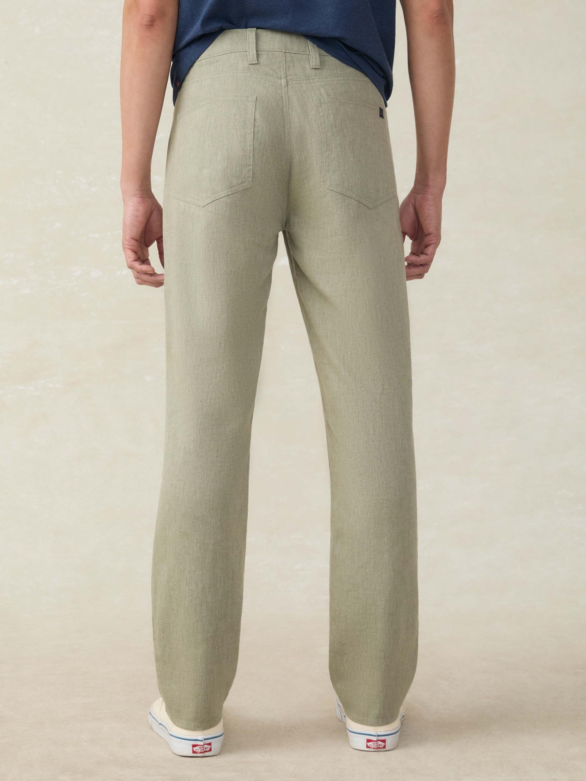 These 5-pocket pants are your warm-weather staple. Made from a breathable linen blend with a touch of stretch, they’re lightweight, comfortable, and designed for all-day mobility. Perfectly paired with the Movement Linen Blazer, they deliver an effortlessly polished look. Detail: Five-pocket style. Zip fly with shank closure. Elastic interior waistband for added comfort and a better fit. Material: 52% Linen, 24% Organic Cotton, 24% Sorona® Polyester Model: Hector is 5'10 wearing size 32x32 Care: Close all fastening before wash. Turn inside out. Machine wash cold with like colors. Delicate cycle. Do not bleach. Tumble dry low. Remove promptly. Cool iron when needed. MBS2511-SGC