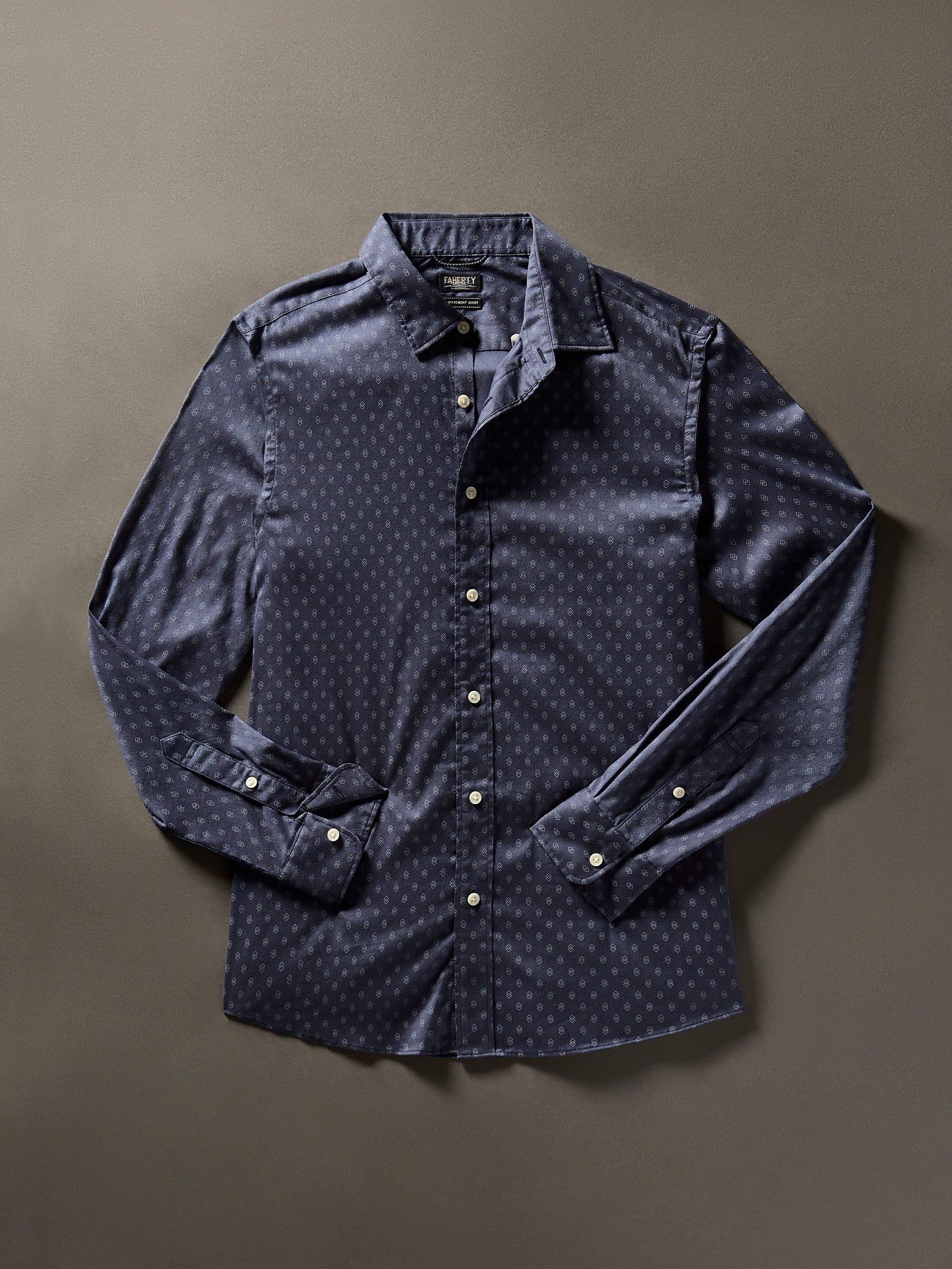 Incredibly soft and airy, the magic of this button-up shirt first comes from our custom-developed Supima cotton blend. What makes Supima cotton so special? Its extra-long staple fiber is renowned for producing the smoothest and finest yarn with natural performance qualities. Then we added the perfect amount of stretch — so it’s comfortable all day. Wrinkle-resistant, with clean, refined tailoring, it's the shirt you can always count on no matter where you're going or who you're meeting. Also available in a Classic Fit Fit: Relaxed through the chest with a slight taper at the waist. Relaxed, tapered sleeves Detail: Spread collar with concealed buttons to prevent fly-away. Button front and cuffs. Bungee locker loop. Shirttail hem. Material: 55% Supima ® Cotton, 25% Recycled Nylon, 16% TENCEL™ Lyocell, 4% Elastane; Faux Shell Buttons; Poly/Rubber Locker Loop Care: Turn inside out. Machine wash cold with like colors. Gentle cycle. Do not bleach. Tumble dry low. Remove promptly. Cool iron when needed. MWC0082-NDK