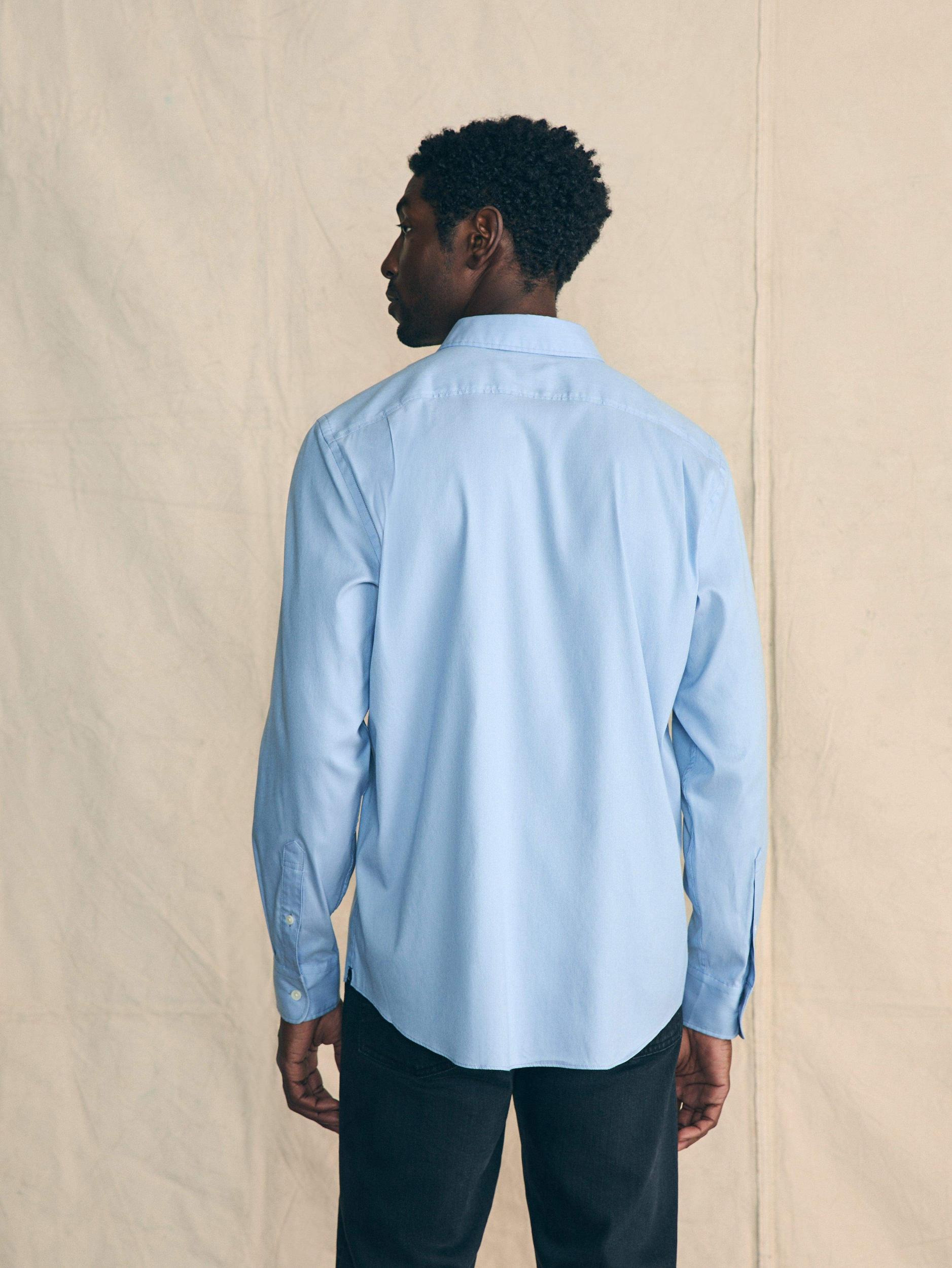 Incredibly soft and airy, the magic of this button-up shirt first comes from our custom-developed Supima® cotton blend. What makes Supima® cotton so special? Its extra-long staple fiber is renowned for producing the smoothest and finest yarn with natural performance qualities. Then we added the perfect amount of stretch — so it’s comfortable all day. Wrinkle-resistant, with clean, refined tailoring, it's the shirt you can always count on no matter where you're going or who you're meeting. Fit: Relaxed through the chest with a slight taper at the waist. Relaxed, tapered sleeves. 2" longer than regular version Detail: Spread collar with concealed buttons to prevent fly-away. Button front and cuffs. Bungee locker loop. Shirttail hem Material: 55% Supima® Cotton, 25% Recycled Nylon, 16% Lyocell, 4% Elastane; Faux Shell Buttons; Poly/Rubber Drawcord Model: Jamal is 6'2 wearing size Medium in Standard Length Care: Turn inside out. Machine wash cold with like colors. Gentle cycle. Do not bleach. Tumble dry low. Remove promptly. Cool iron when needed. MWC0088-ATS