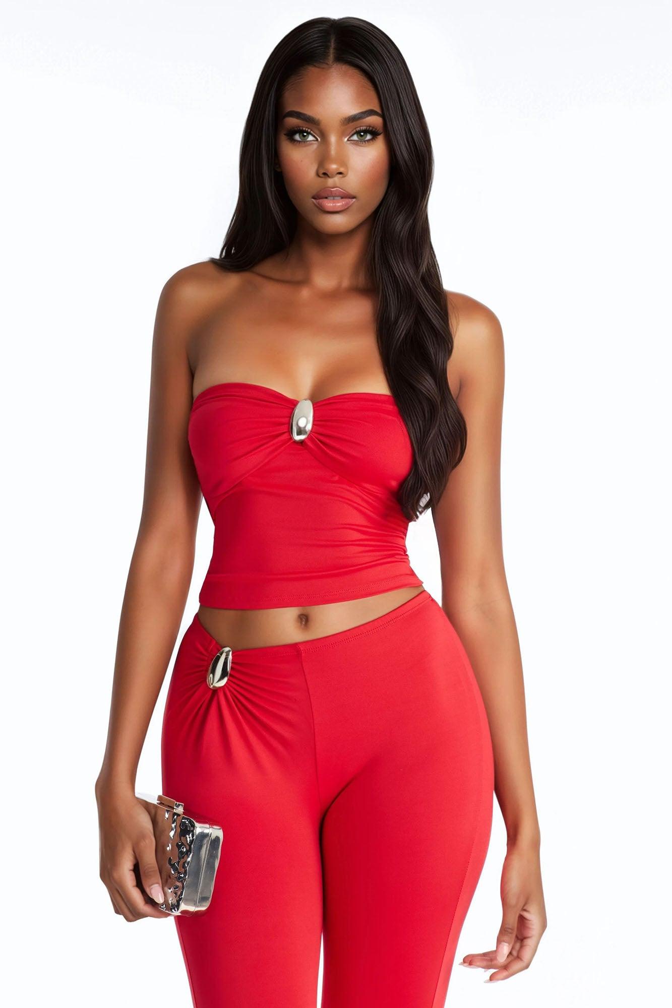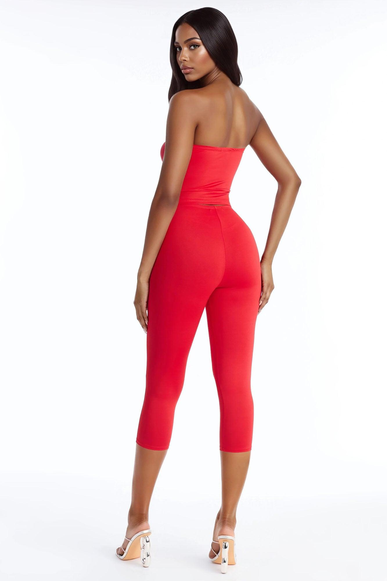Available In Black And Red. 2 Piece Ensemble Tube Top And Capri Pant Set Stretch Inseam 21" Ruched Elastic Waistband Self : 80% Polyester 20% Spandex Imported California Proposition 65WARNING: Cancer and Reproductive Harm - www.P65Warnings.ca.gov.