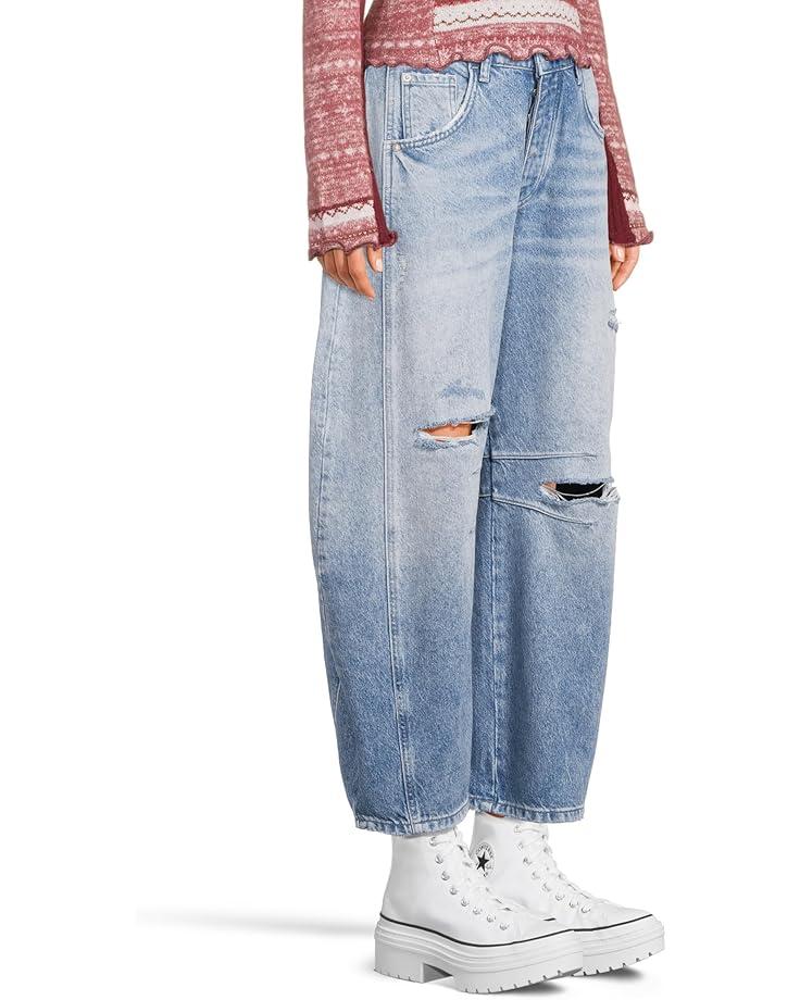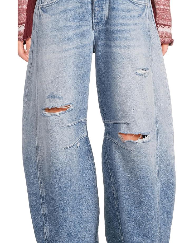 Give your casual fashion statment an exquisite touch wearing the Free People™ We The Free Good Luck Mid-Rise Barrel Jeans that beautifully complements all tops and tees. The jeans comes in a mid-rise style with zip-fly and button closure, rigid denim fabrication, belt loops at waistband, 4-pocket style, subtle distressing, tapered bottom hem, and seam detail throughout.