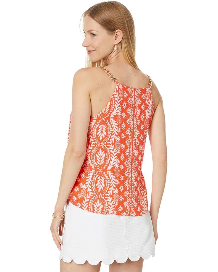 Get set for the party and look effortlessly sophisticated wearing the Lilly Pulitzer® Joannah Silk Top. This easy fit shirt features an apron neckline that embraces your allover look and the sleeveless construction with gold metal chain straps enhances the sensuous feel.