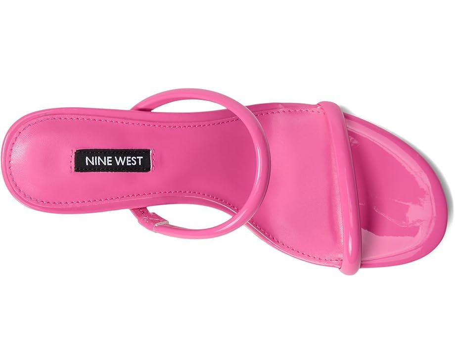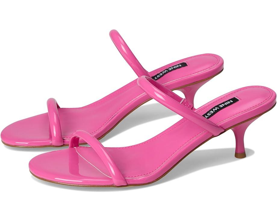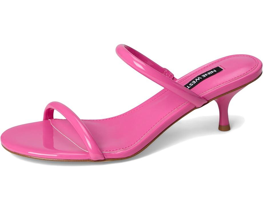 Stylish and cute, the Nine West® Berri dress sandal is the perfect wardrobe staple. It features a chic open round-toe design, a slip-on silhouette, and mid mid-stiletto heel. Crafted with a double sleek strapped faux leather upper and comfortable footbed, this sandal is sure to impress!