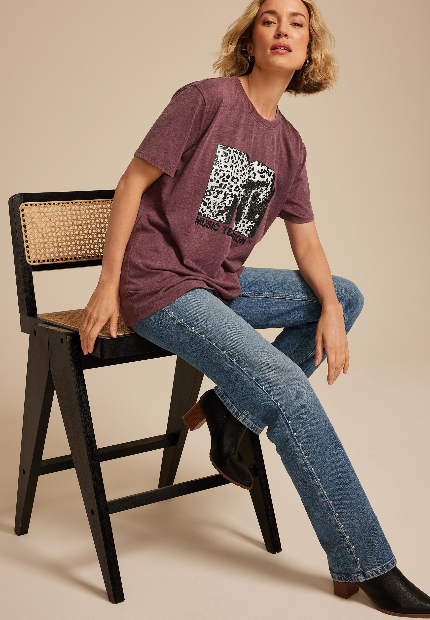 Extra relaxed and trend-right for cool gals and comfort lovers alike. .mar-pdp-section .mar-product-description {color: #000;}.mar-pdp-section .mar-product-description ul, .mar-pdp-section .mar-product-description ul>li {margin-left: 10px;padding-left: 10px;}.mar-pdp-section .mar-product-description .mar-product-description-content ul li{list-style-type: disc;margin: 0 0 5px;padding-left: 5px;}.mar-pdp-section .mar-product-description p {color: #000;padding: 5px 0;}@media only screen and (max-width: 1023px){.mar-pdp-section .mar-product-description .mar-product-description-content ul li{list-style-type: disc !important;} .mar-pdp-section .mar-product-description .mar-product-description-content .mar-tab-content ul{padding-left: 10px;}.mar-pdp-section .mar-product-description .mar-product-description-content .mar-tab-content {font-weight: 300;}} Features: comfortable fabric easy stretch solid versatile color inchMTV inch animal print graphic crew neck short sleeves relaxed shoulder tunic length straight hem