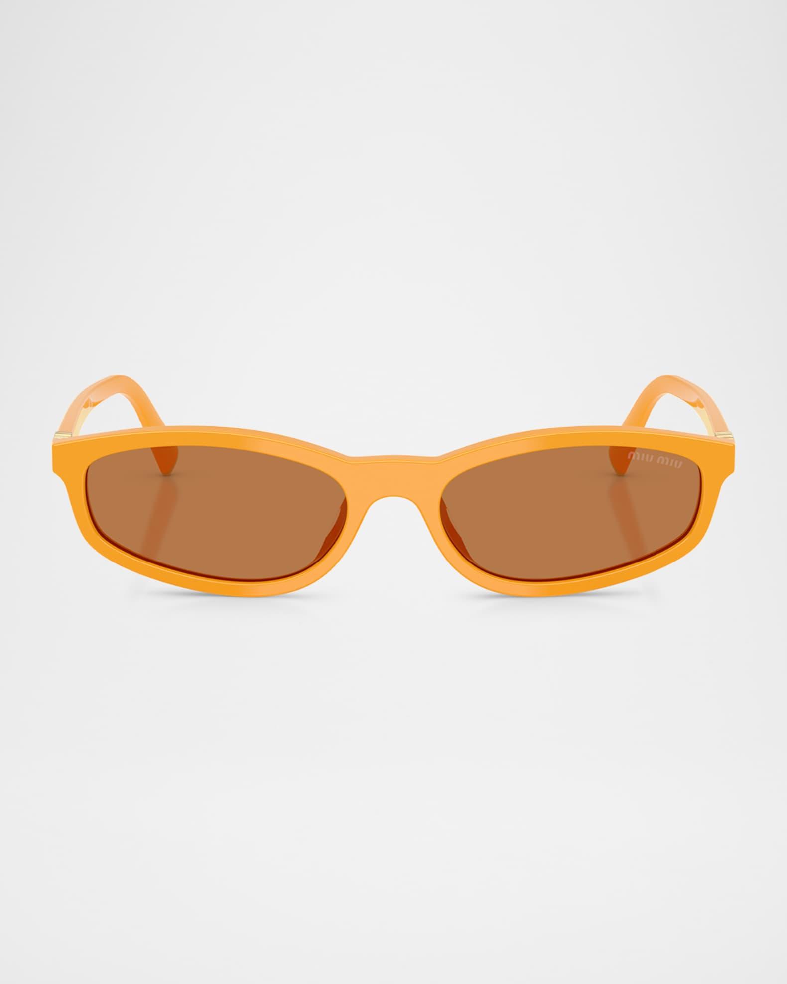 Miu Miu oval sunglasses from the Miu Regarde collection feature a low, feminine shape paired with thin temples for a sleek profile. Eye/bridge/temple (in mm): 54-17-140 Monochromatic lenses Saddle nose bridge Iconic vertical logo on temples Thin, tapered arms 100% UVA/UVB protection Acetate/plastic Spot clean Made in Italy Proposition 65 warning for California residents