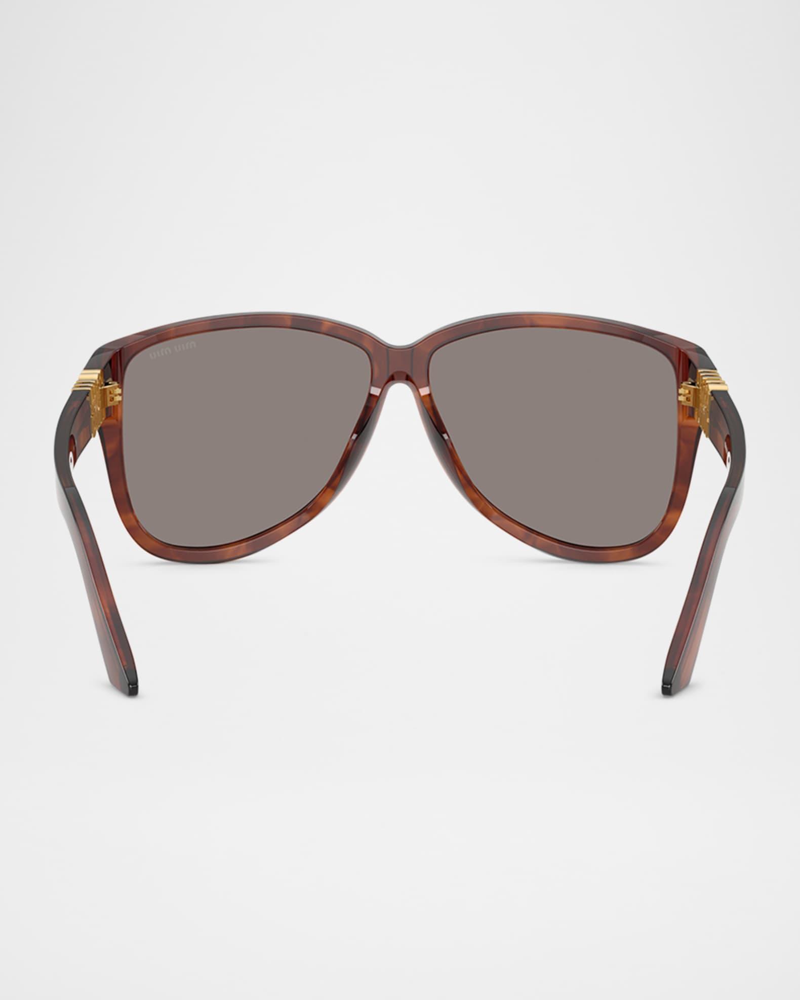 Miu Miu "MU A08SF" sunglasses reinterpret the classic aviator silhouette with a bold, feminine twist, featuring a full-acetate construction and softly rounded frames. Eye/bridge/temple (in mm): 61-12-140mm Monochromatic lenses Saddle nose bridge Signature vertical logo on the temples Tapered arms 100% UVA/UVB protection Acetate Spot clean Made in Italy Proposition 65 warning for California residents