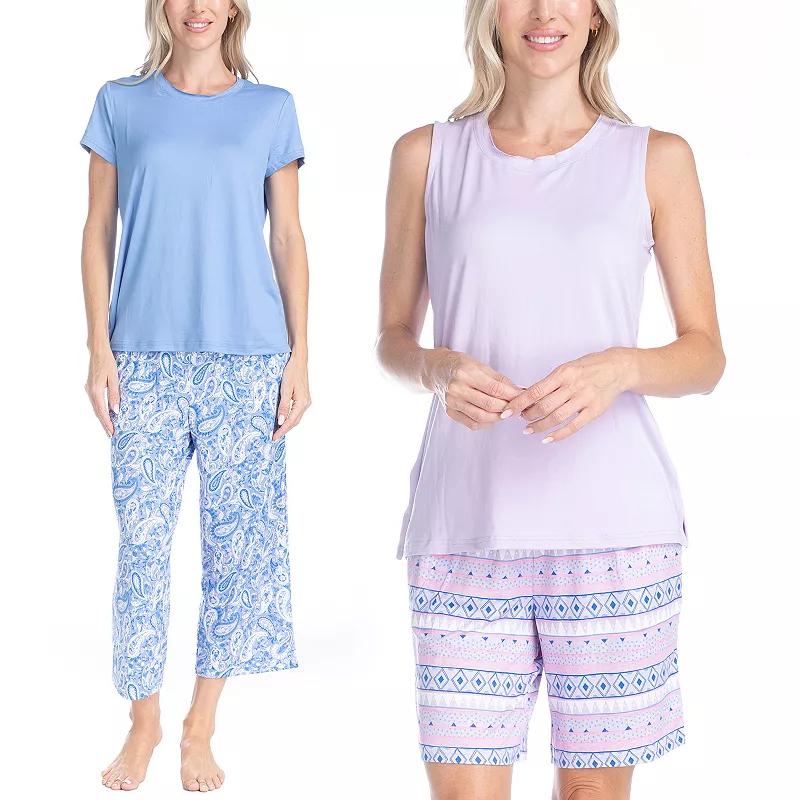 Embrace cozy nights with this delightful pajama set from MUK LUKS, designed for maximum comfort and ease. Each piece moves gracefully with you, allowing for restful sleep and lazy weekends, while charming details make bedtime a joyful routine. Click on this INTIMATES & SLEEPWEAR GUIDE to find the perfect fit and more!Embrace cozy nights with this delightful pajama set from MUK LUKS, designed for maximum comfort and ease. Each piece moves gracefully with you, allowing for restful sleep and lazy weekends, while charming details make bedtime a joyful routine. Click on this INTIMATES & SLEEPWEAR GUIDE to find the perfect fit and more!FEATURES Included: Tee, tank, short, capri 2 pockets No closure - pull-on styling Short sleeves CrewneckFIT & SIZING Relaxed fit 5 1/2-in short inseam Midrise sits on the high hip Tapered leg opening Covered elastic waistbandFABRIC & CARE Polyester, spandex Machine wash and tumble dry low Imported Size: 1X. Color: Peri Paisley Stripe. Gender: female. Age Group: adult.