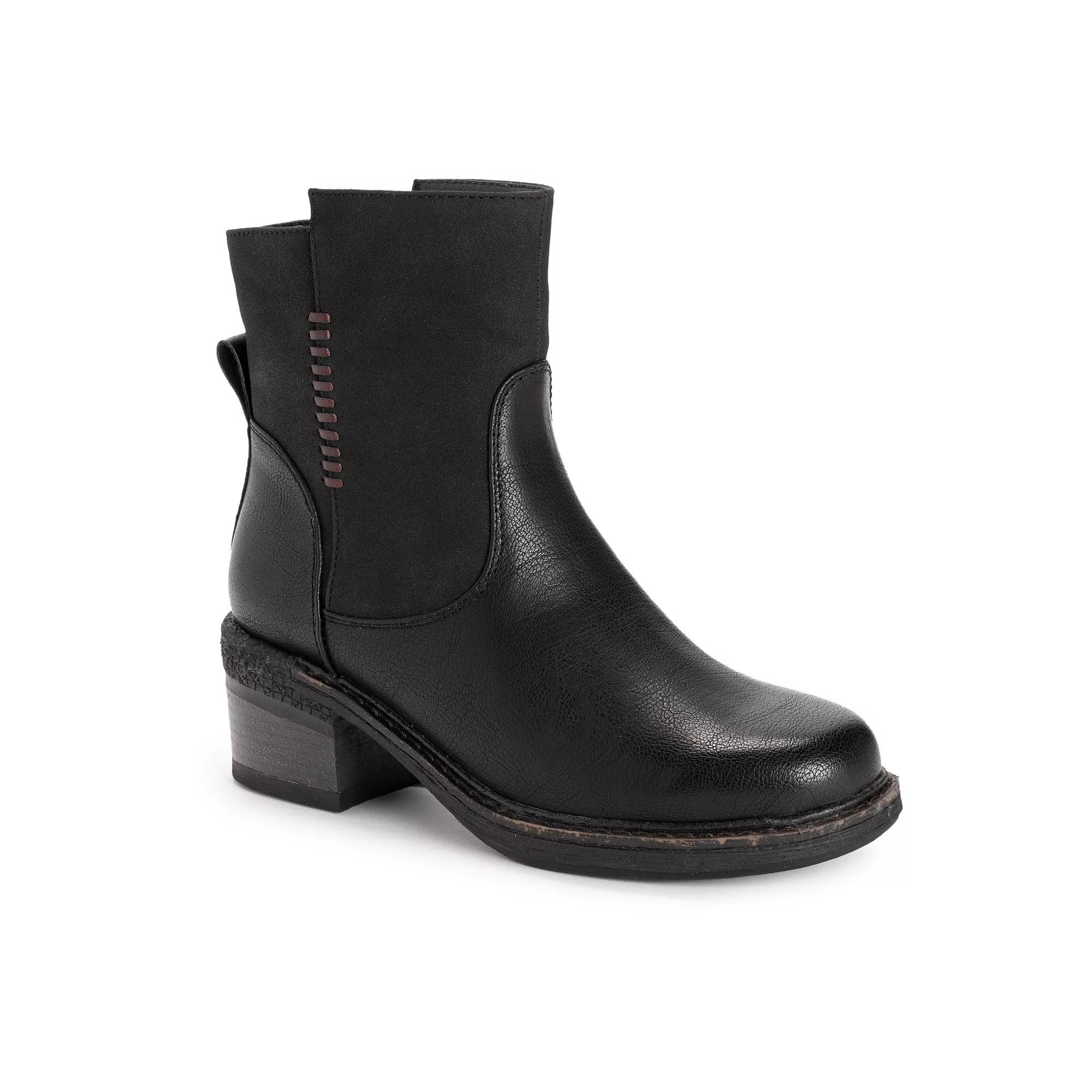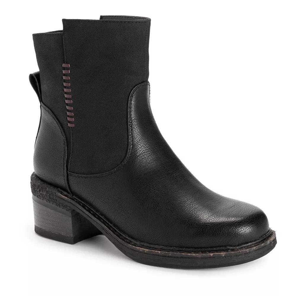 Step up your casual looks with these stylish MUK LUKS Logger Niagara women's ankle boots. Click this FOOTWEAR GUIDE to find the perfect fit and more! - https://www.kohls.com/feature/shoesizeguide.jsp. SHOE FEATURES: Water-resistant, Memory foam insole, Durable rubber outsole. SHOE CONSTRUCTION: Polyurethane upper, Polyester lining, Foam midsole, TPR outsole. SHOE DETAILS: Round toe, Zipper closure, Foam footbed, 2.28-in. heel, 5.04-in. Shaft, 11.02-in. Circumference. Size: 8. Color: Black. Gender: female. Age Group: adult. Material: FABRIC.