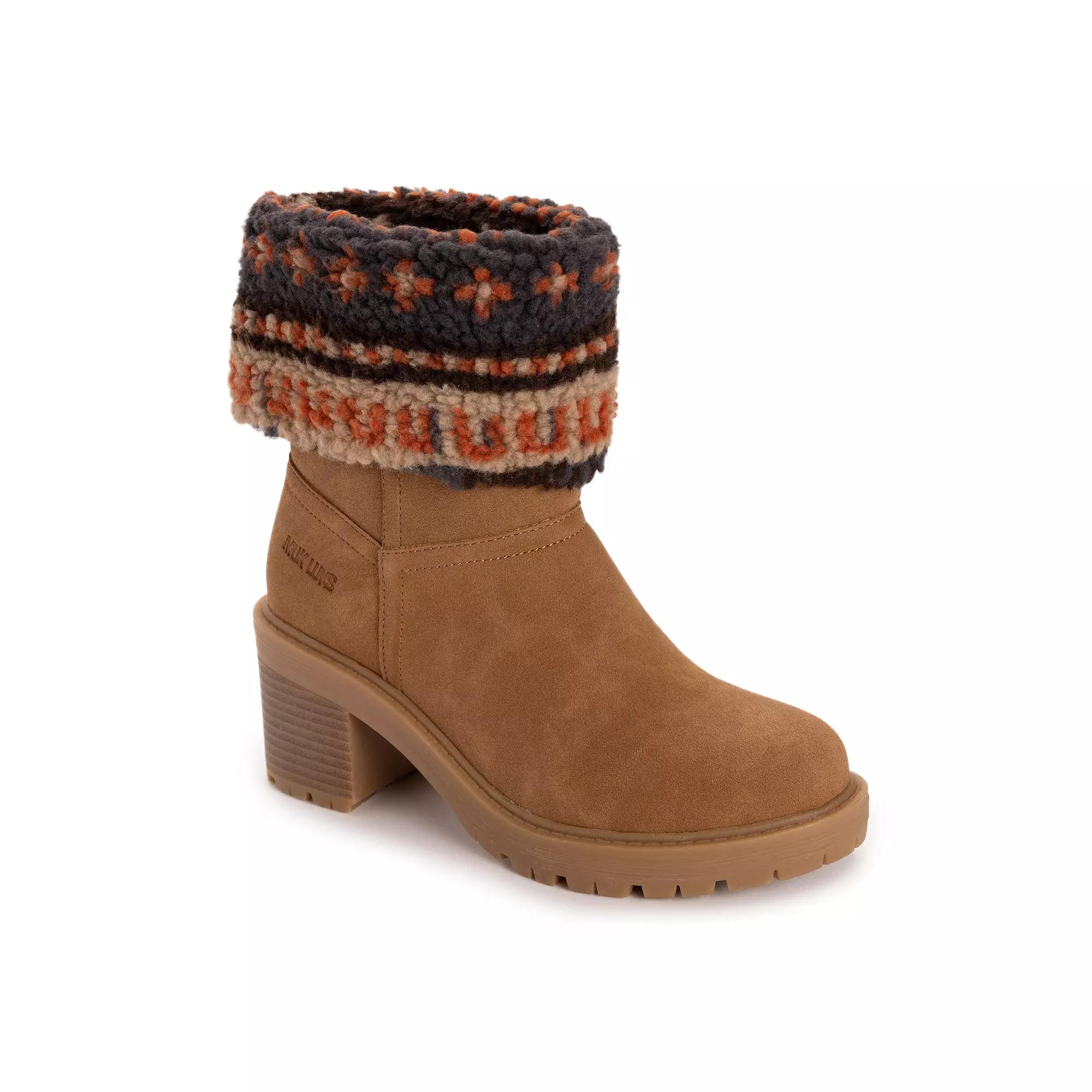 Fall in love with your new go-to footwear from MUK LUKS, the Londyn Bootie, designed with stylish fold-over cuffs that showcase a delightful knit detail. With a convenient side zip and plush Memory Sole foam insoles, these boots promise all-day comfort while keeping your autumn wardrobe effortlessly chic. Click this FOOTWEAR GUIDE to find the perfect fit and more! - https://www.kohls.com/feature/shoesizeguide.jsp. FEATURES: Adorable fold-over cuffs with a chic knit design, Memory Sole foam insoles for ultimate comfort, Water-resistant for added protection. DETAILS: Round toe, Zipper closure, Non-skid outsole, Heel height: 2.8, Imported. FIT & SIZE: Mid-calf boot shaft, 7.9 inches boot shaft height, 10.32 inches boot shaft circumference. MATERIAL & CARE: Polyester upper, lining and midsole, Thermoplastic Rubber outsole, Foam footbed, Spot clean. Color: Dark. Gender: female. Age Group: adult. Material: SYNTHETIC.