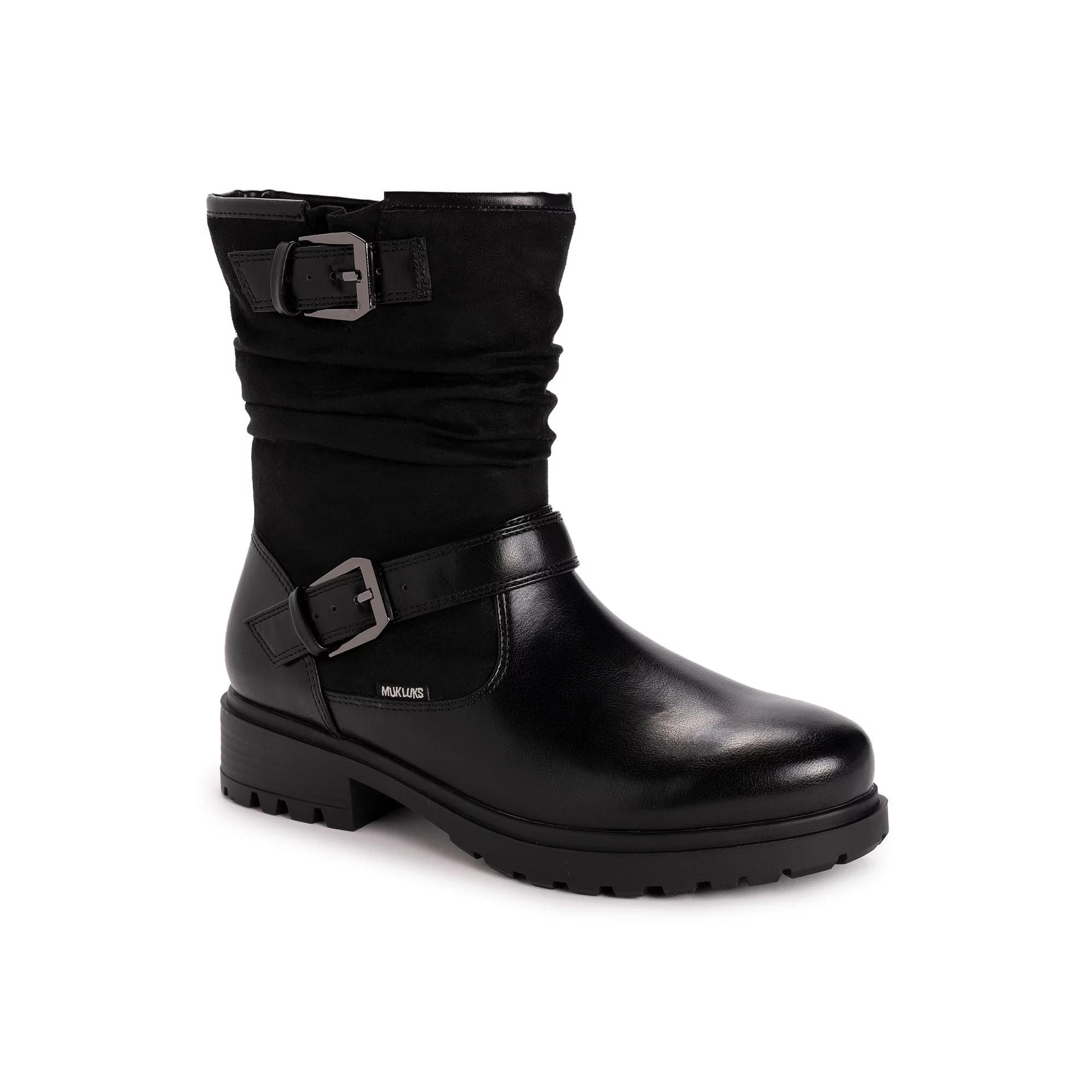 These Womens MUK LUKS(R) Scarlett Sabrina boots are simply classic with a touch of modern detailing. With decorative buckles and a flecked outsole, youll reach for these side-zip boots to go with all your favorite outfits. Heel Height: 1 3/8Upper Material: Faux Suede, Faux LeatherOutsole Material: TPRAlso available in Wide Widths.
