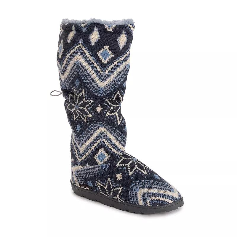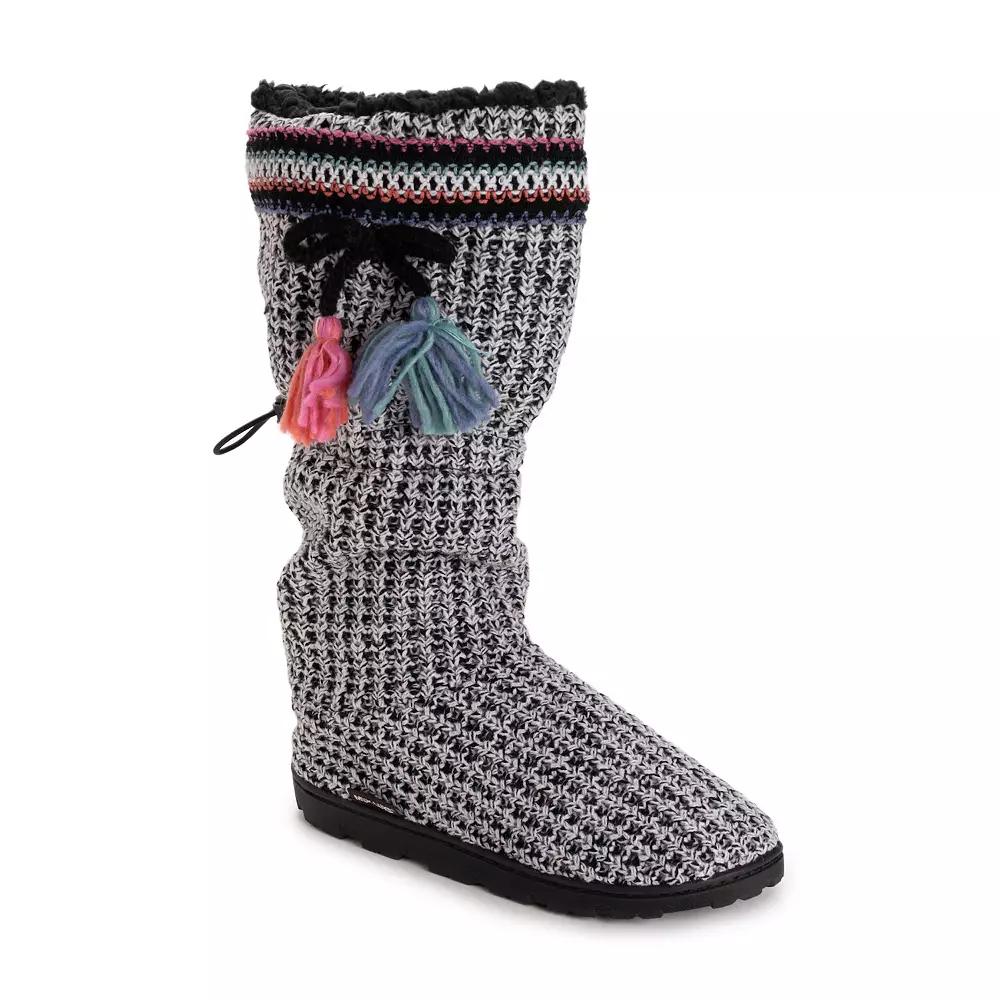 Take on the cold in comfort and confidence with these cozy MUK LUKS Tabbi Toggle Women's Knit Boots. How do you accessorize? Check out our ACCESSORIES GUIDE for essential tips to elevate your style with must-have accessories. - https://www.kohls.com/feature/accessories-guide.jsp. FEATURES: Padded footbed, Pull-on design, Adjustable toggle cord, Soft footbed. DETAILS: Polyester upper, Acrylic lining, Polyester midsole, TPR outsole, Hand wash, Non-skid sole, Round toe style, Imported. Size: Large. Color: Black White. Gender: female. Age Group: adult.