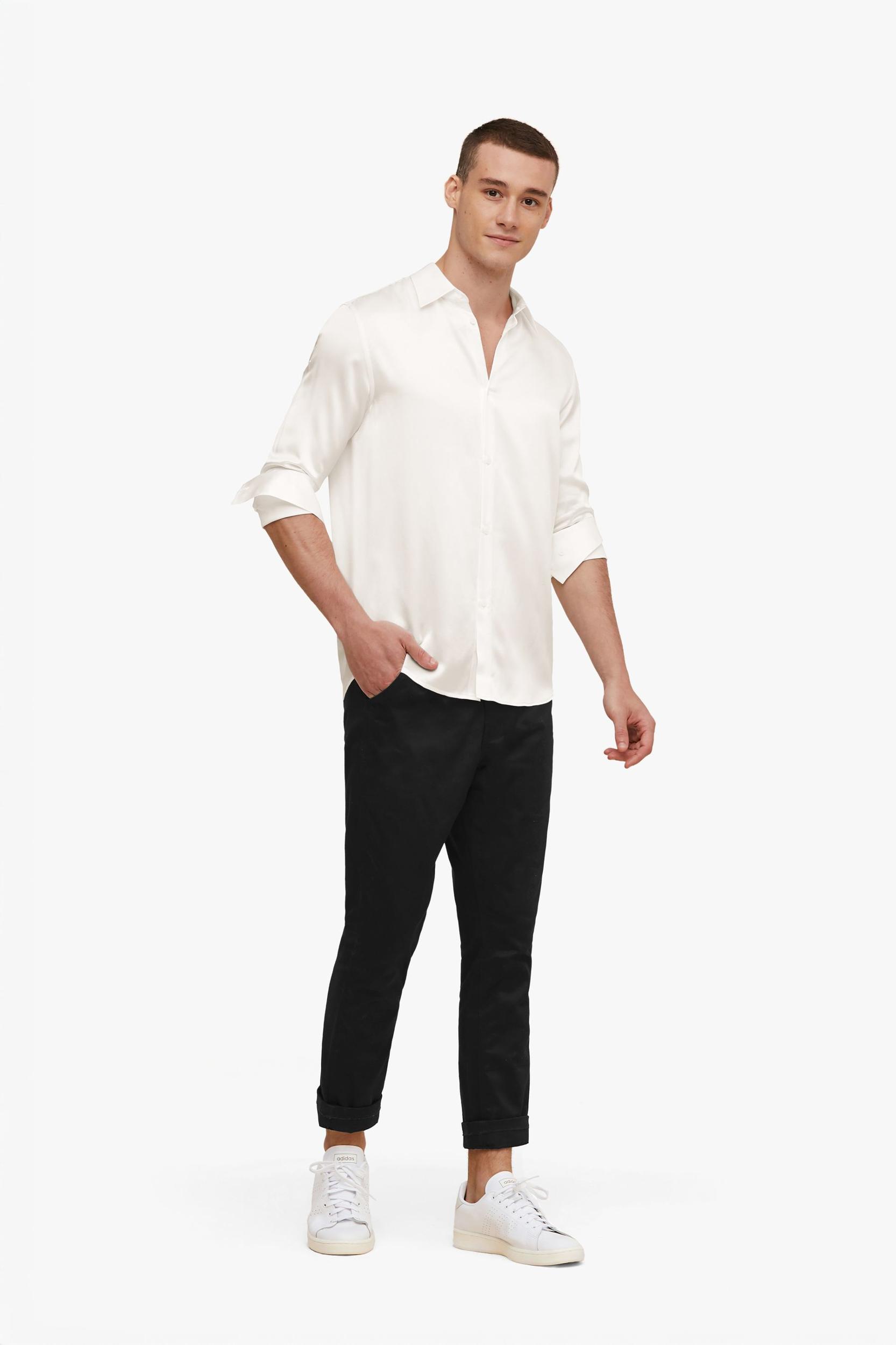 Dress the part with this classic long-sleeve shirt. Woven in textured 100% Mullberry silk, this long-sleeved shirt from one of our classical design, comes in a regular fit, and features a classic button-down closure, mother-of-pearl buttons.