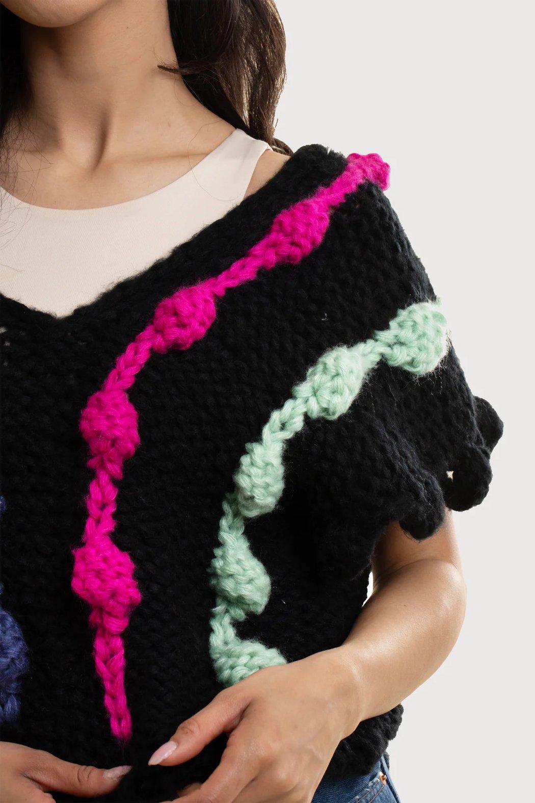 Elevate your fall wardrobe with our Multicolored Chunky Knit Sweater Vest. This luxurious sweater boasts multicolored bubble stripes that add a touch of modern flair, comfort, and texture. Pair this soft vest with a turtleneck, jeans, or a dress to start the season in style.