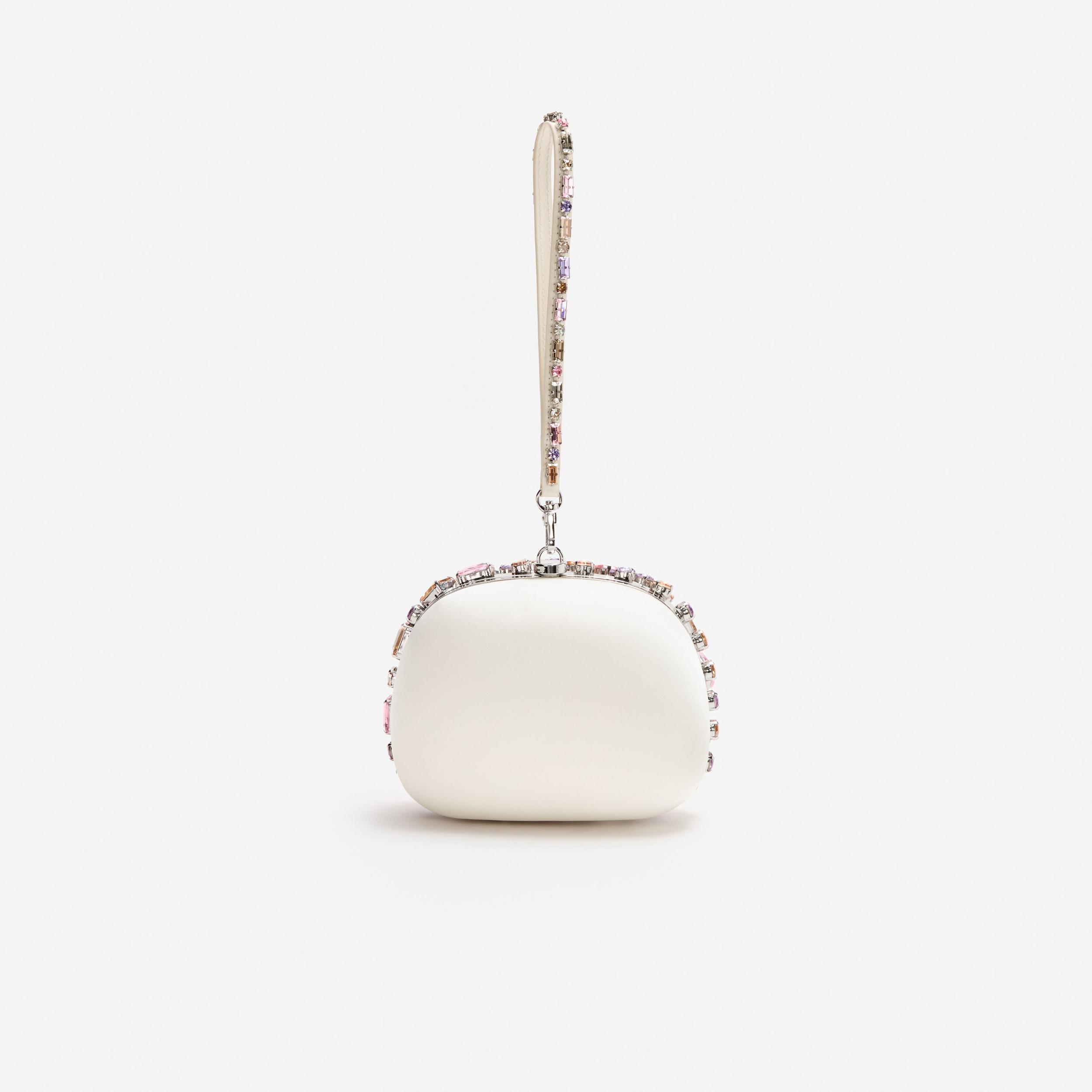 Absolutely brilliant, this wristlet clutch's satin exterior glistens with multi-coloured crystals for incandescent effect. Designed to house all going-out essentials, get ready for a big night out.Rhinestone satin exteriorClasp fasteningWrist strap attachmentRemovable shoulder chain