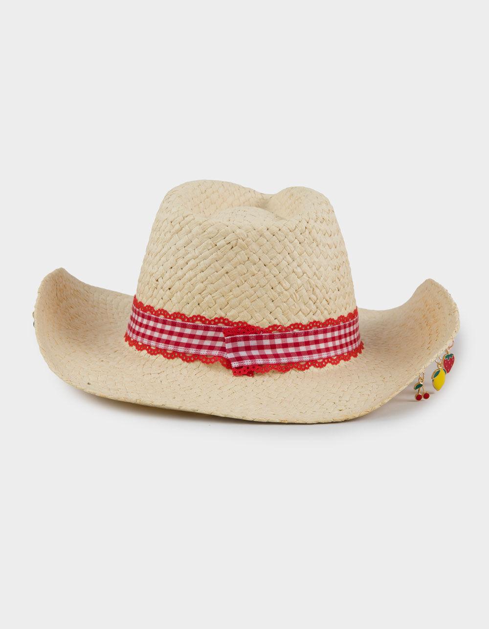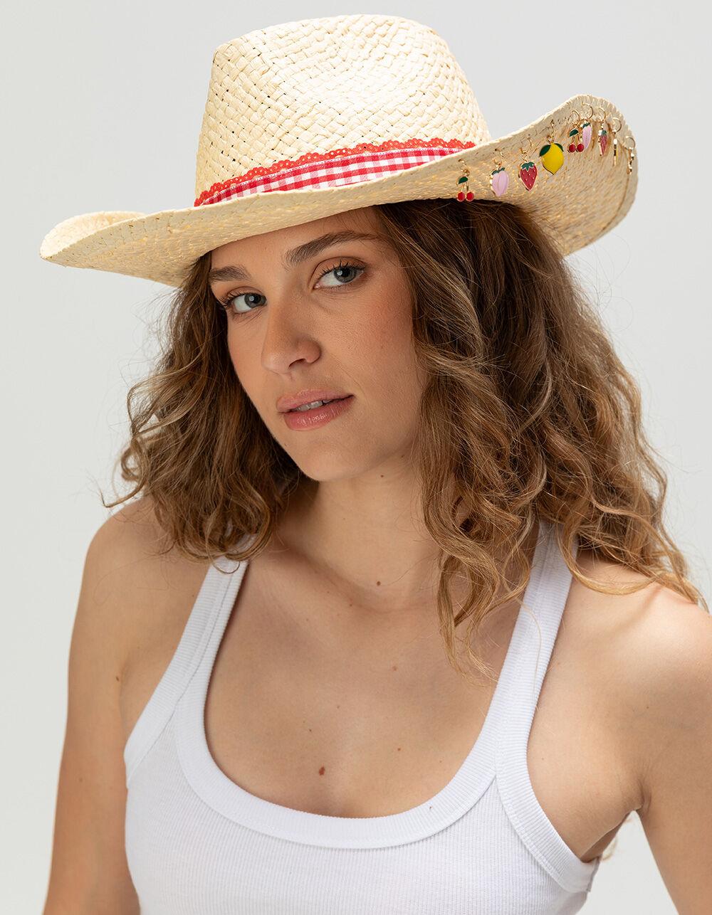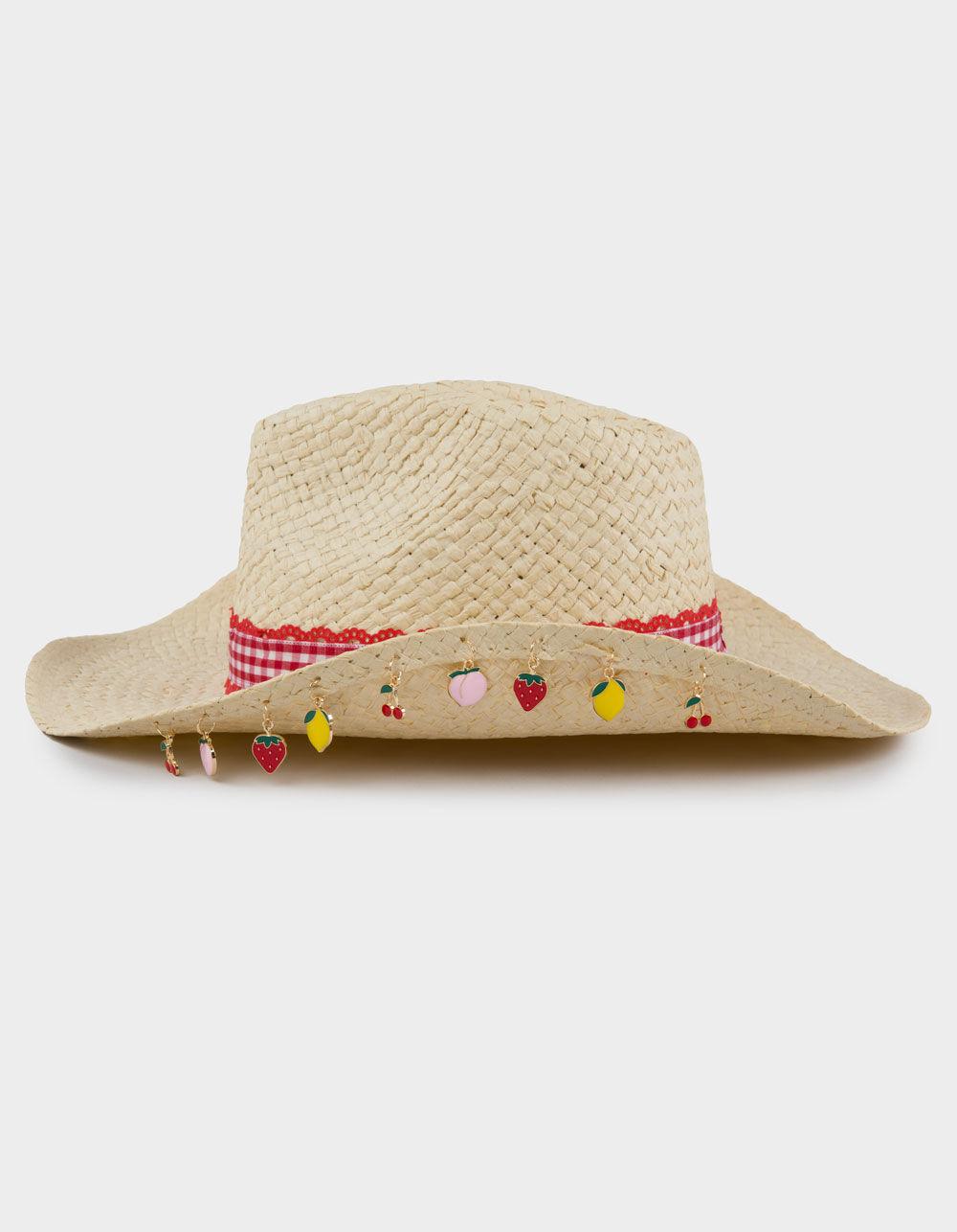 Multi Fruit Charm Straw Cowboy Hat - MULTI