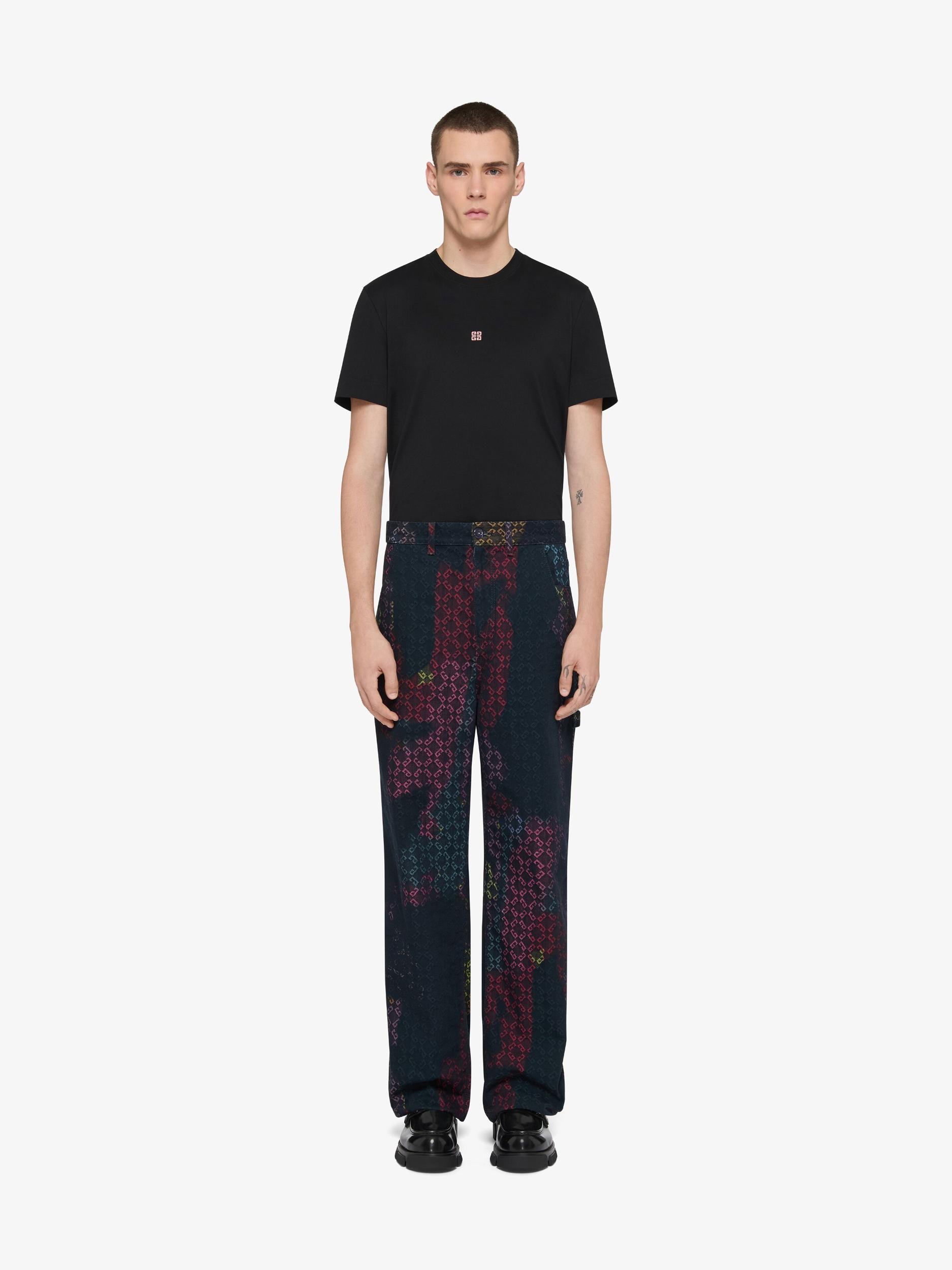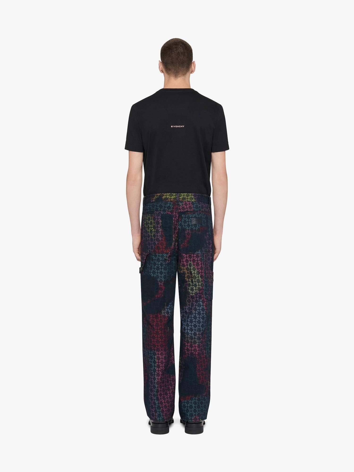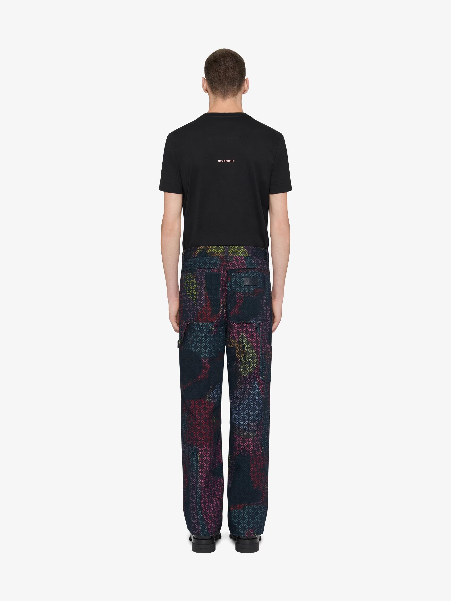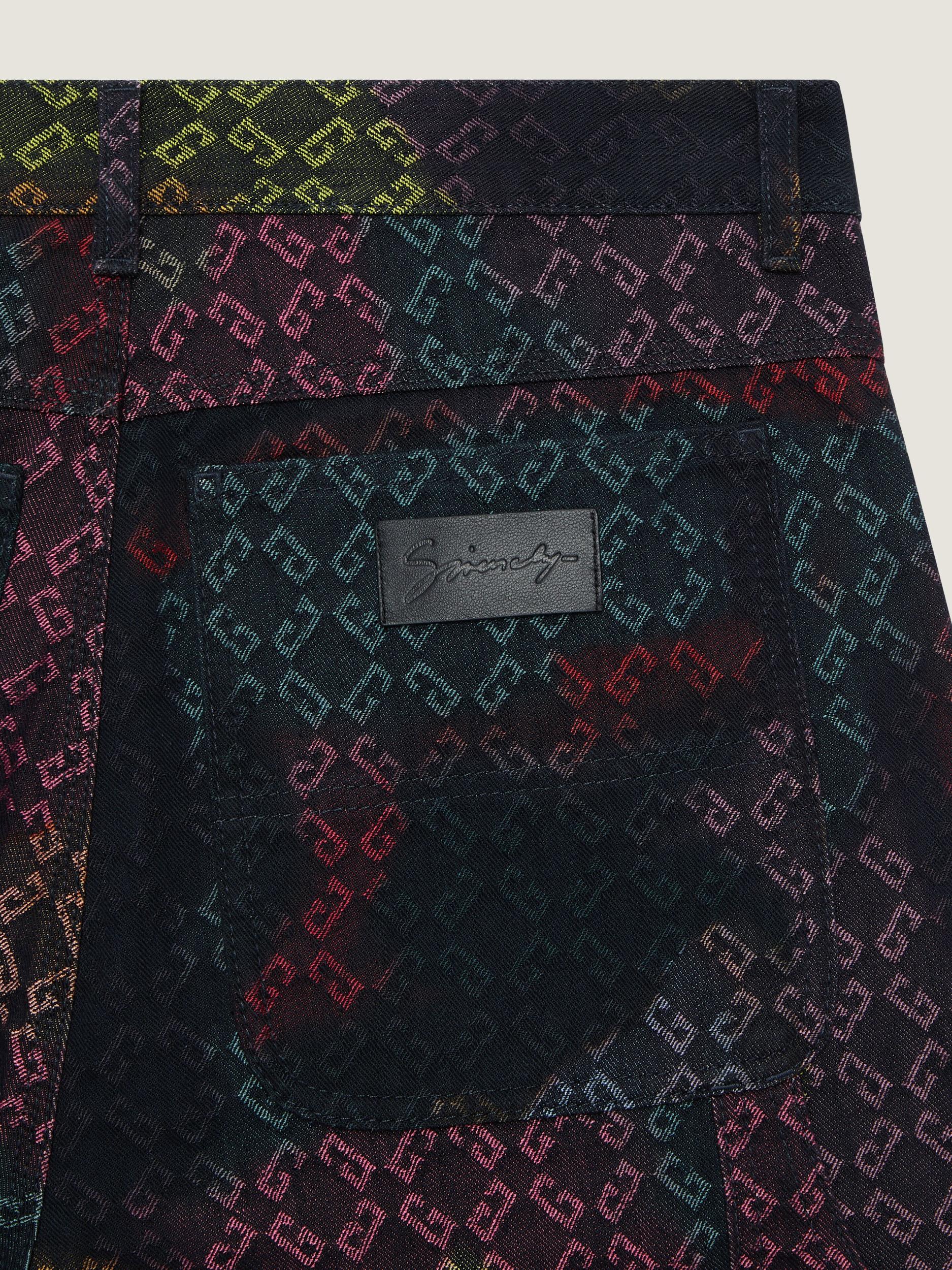 In collaboration with Tomo Campbell, London based artist who focuses on contemporary artworks, Givenchy House presents an artistic Summer 25 capsule collection for men. Inspired by his artwork, the all-over monogram 72 is revisited with fresh & vibrant colors. Jeans in denim. Waist with loops, zipped and button closure. Multicolor monogram 72 jacquard by the artist Tomo. GIVENCHY patch in leather stitched on the back. Two front pockets. One side pocket. Two back pockets. Relaxed fit. Model measures 6.1 Feet and wears a size 30.