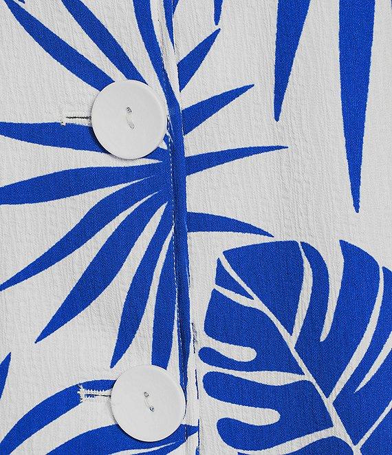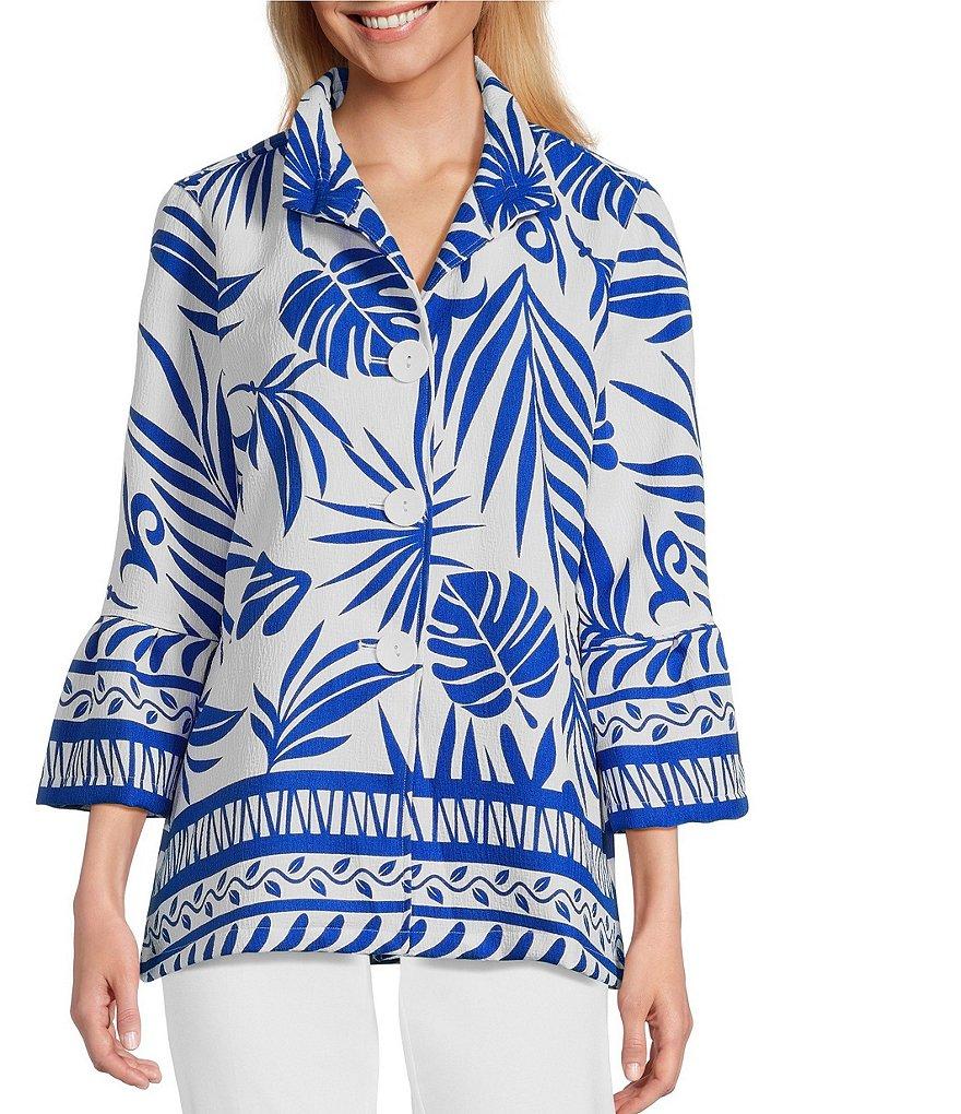 Multiples Bark Cloth Border Print Wire Collar 3/4 Sleeve Fitted Button Front Top