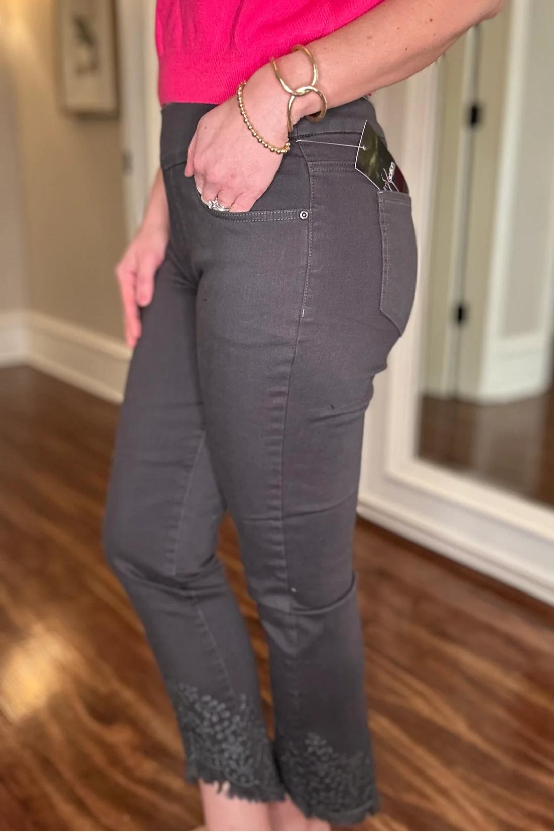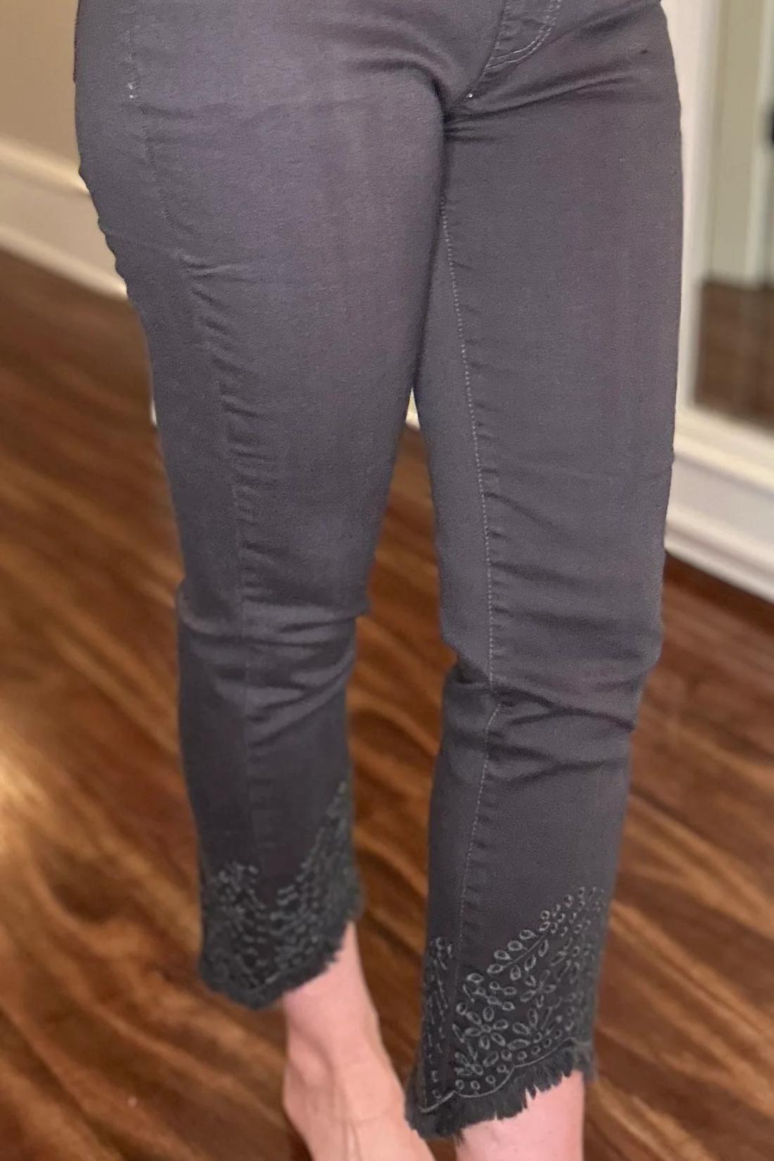 MULTIPLES GREY ANKLE JEAN WITH SCALLOP HEM