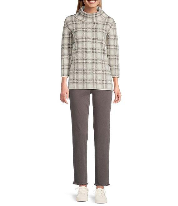From Multiples Petite, this top features: Jacquard knit fabrication Cowl neckline 3/4 sleeves Dropped shoulders Straight hem with side vents Pullover construction Approx. 24.5" length Viscose/polyester/polyamide Place in garment bag-machine wash cold Imported.