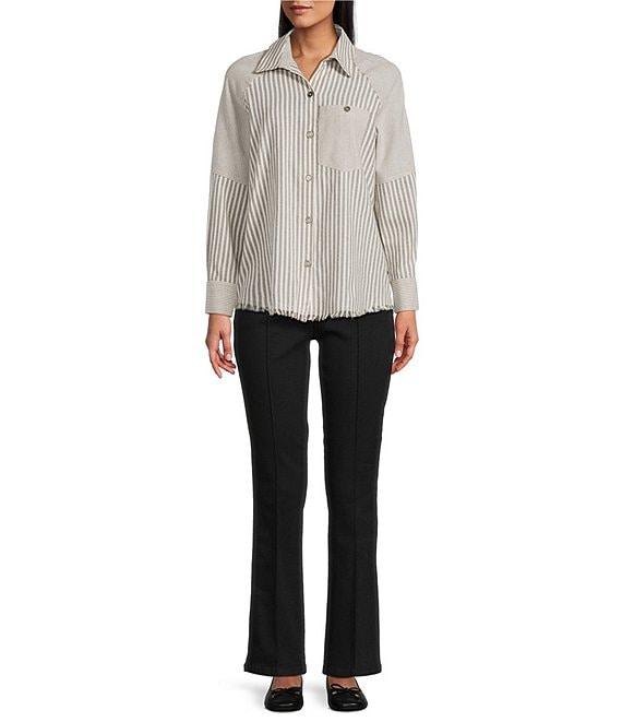 From Multiples Petite, this shirt features: Yarn dye woven fabrication Point collar neckline Long raglan sleeves with button cuff Stripe print One chest patch pocket Back yoke with seam Shaped hem Button-front closure Approx. 25" length Cotton Turn inside out/machine wash cold Imported.