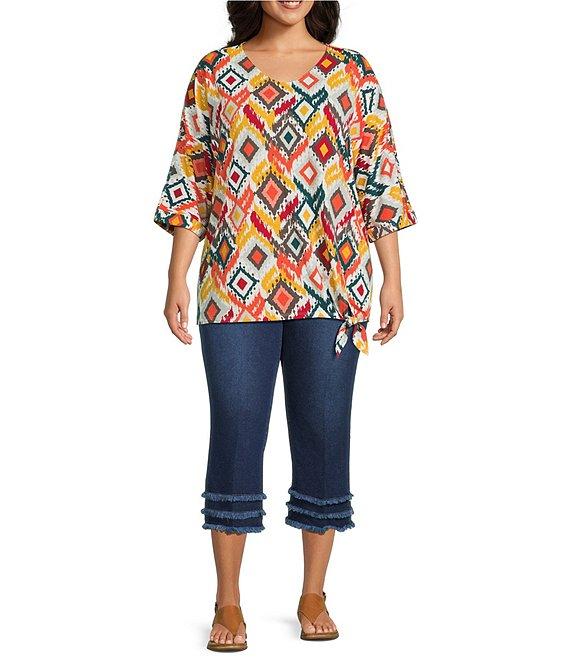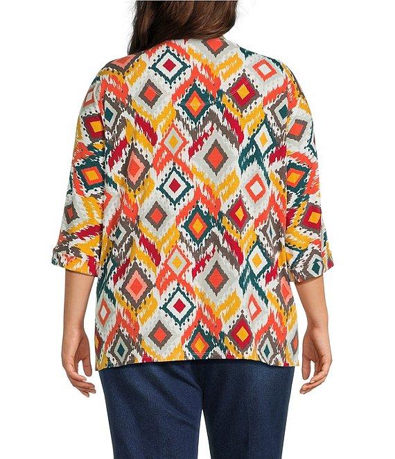 Multiples Plus Size Slub Knit Diamond Multi V-Neck 3/4 Dolman Sleeve Top