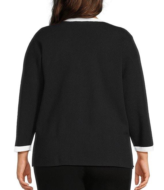 Multiples Plus Size Wide Neck 3/4 Sleeve Sweater Knit Top