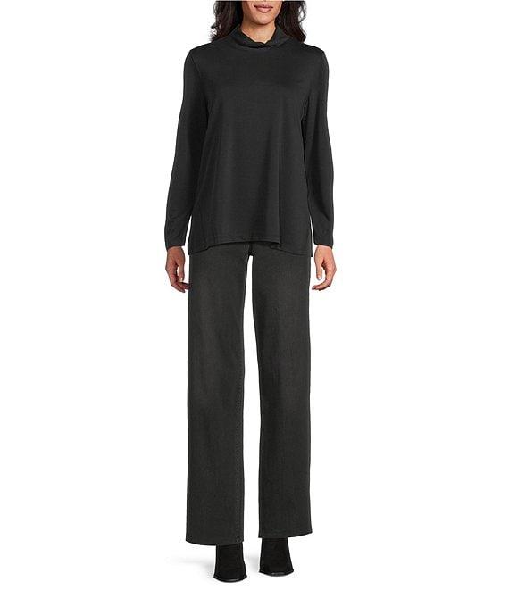 From Multiples, these pants feature: Stretch denim knit fabrication Wide-leg Waistband Functional front and back pockets Ankle length Pull-on construction Approx. 28" inseam, 19" leg opening, 11.75" front rise, 16.5" back rise Cotton/polyester/spandex Turn inside out machine wash/tumble dry Imported.