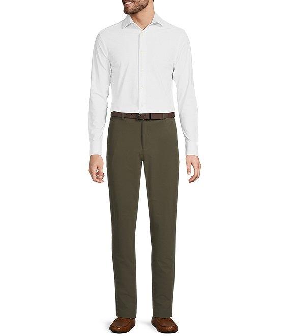 From Murano, these pants feature: Solid tone Flat front Mid rise Slim fit through hip and thigh Narrowed leg opening Stretch waistband Hook & zipper front closure Back welt pockets Full length Tapered legs Moisture wicking Quick dry Easy travel Nylon/spandex Machine wash/tumble dry Imported.