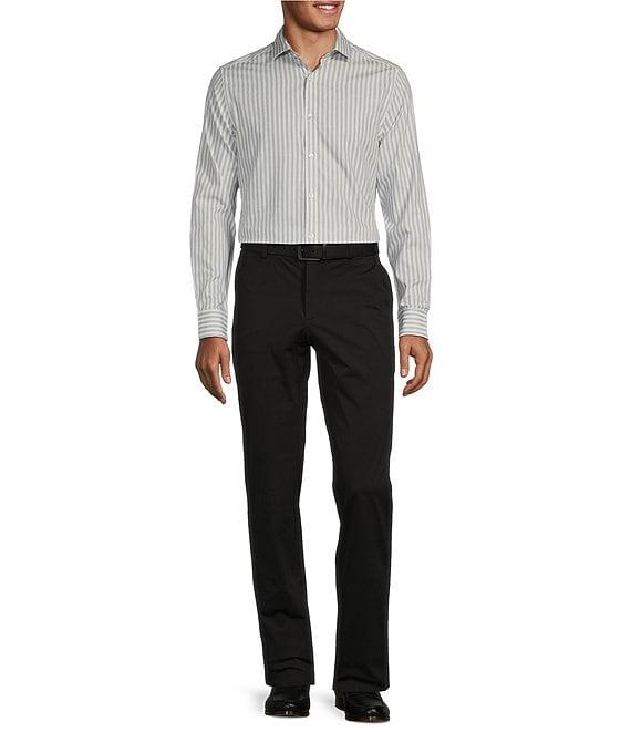 From Murano, these pants feature: Solid tone Flat front Slim fit through hip and thigh Narrowed leg opening Stretch waistband Hook & zipper front closure Back welt pockets Moisture wicking Quick dry Easy travel Nylon/spandex Machine wash/tumble dry Imported.