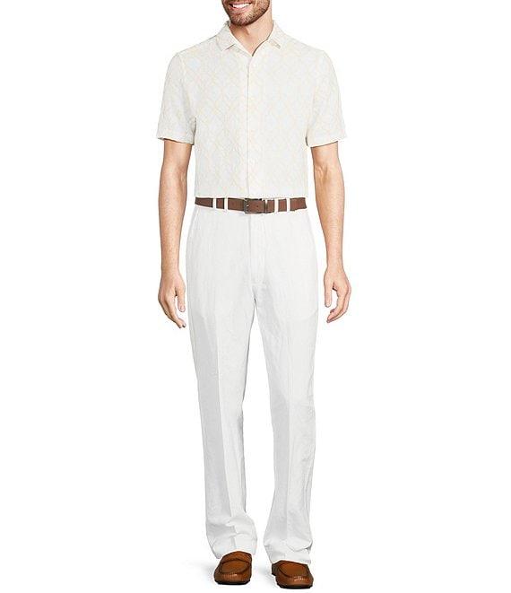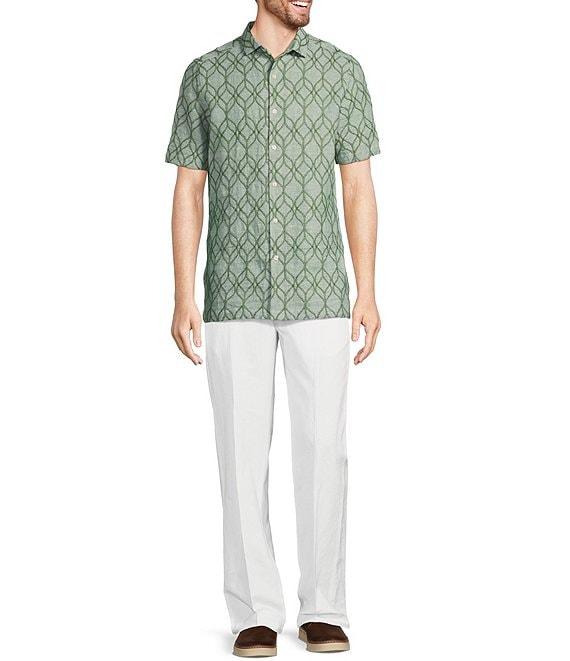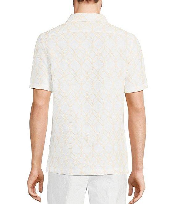 From Murano, this shirt features: Embroidered fabric Convertible camp collar Short sleeves Slim fit Full button-front closure Linen/cotton blend Machine wash/tumble dry Imported. Baird McNutt linen is lightweight, breathable and supremely comfortable. Fabric results in a finer touch and elevated feel.