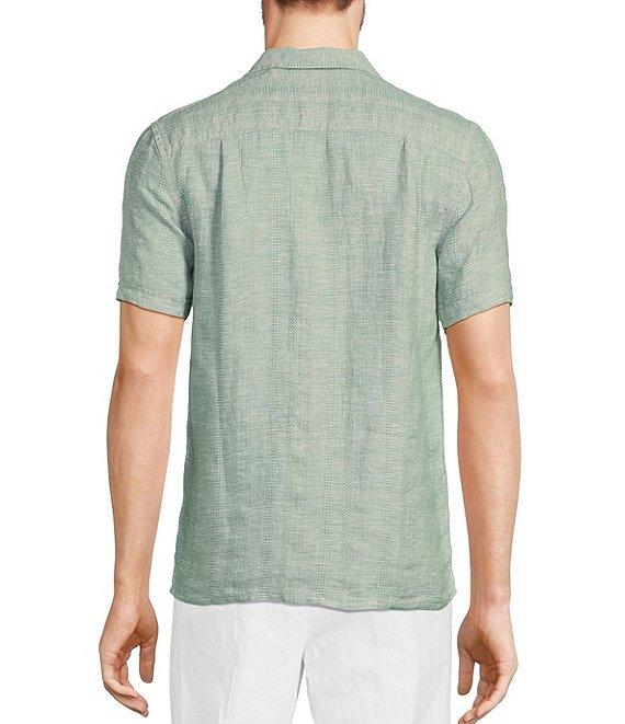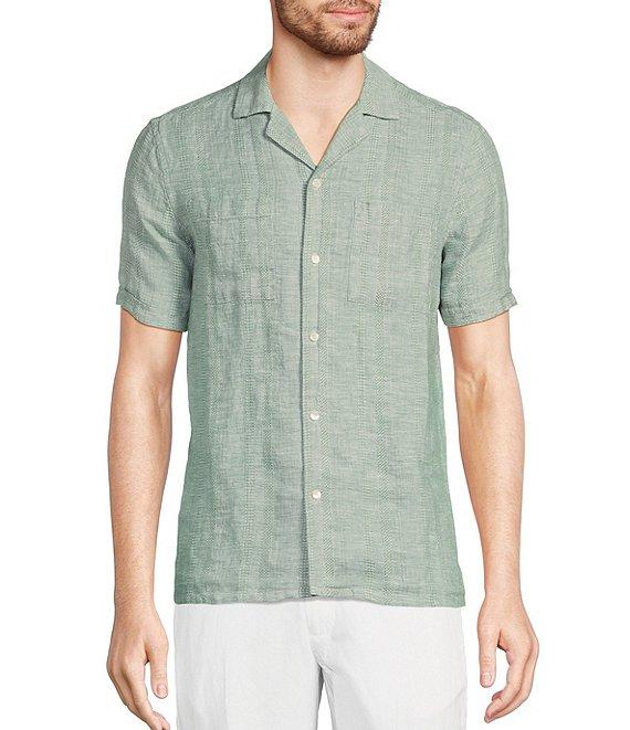From Murano, this shirt features: Textured feel Spread collar Short sleeves Dual chest pockets Button-front closure Slim fit Linen Machine wash/tumble dry Imported. Baird McNutt linen is lightweight, breathable and supremely comfortable. Fabric results in a finer touch and elevated feel.