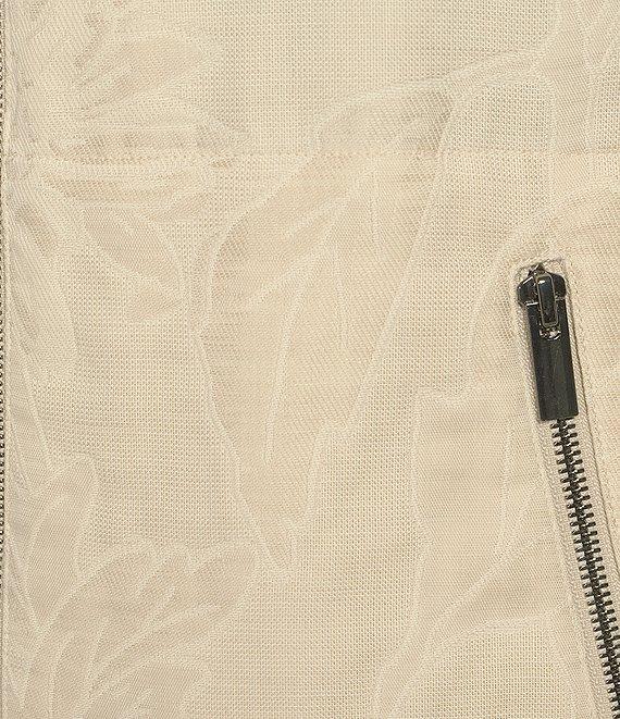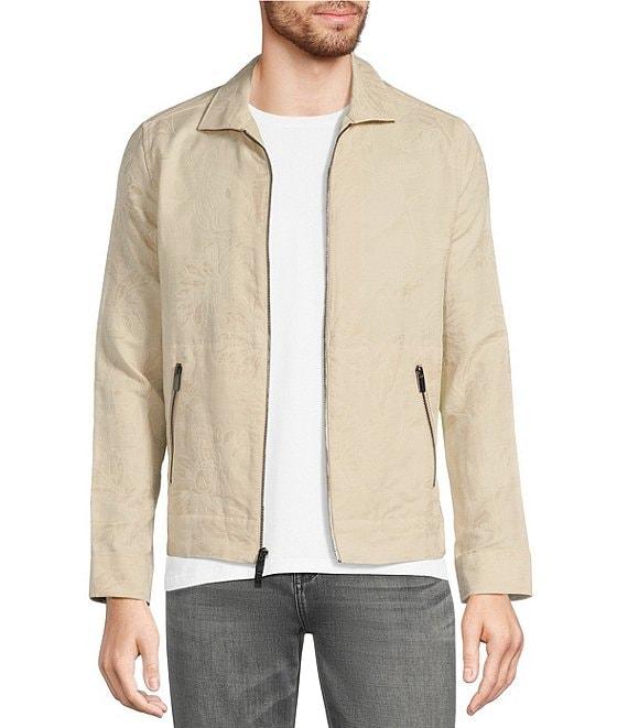 From Murano, this blazer features: Slim fit Floral Jacquard fabrication Spread collar Long sleeves Zip front closure Two slanted side pockets Baird McNutt Linen Dry clean Imported. Baird McNutt is lightweight, breathable & supremely comfortable.