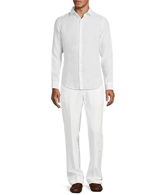 From Murano, this shirt features: Solid tone Slim fit Spread collar Long sleeves Button-front closure Linen Machine wash/tumble dry Imported. Baird McNutt linen is lightweight, breathable, and supremely comfortable. Fabric results in a finer touch and elevated feel.