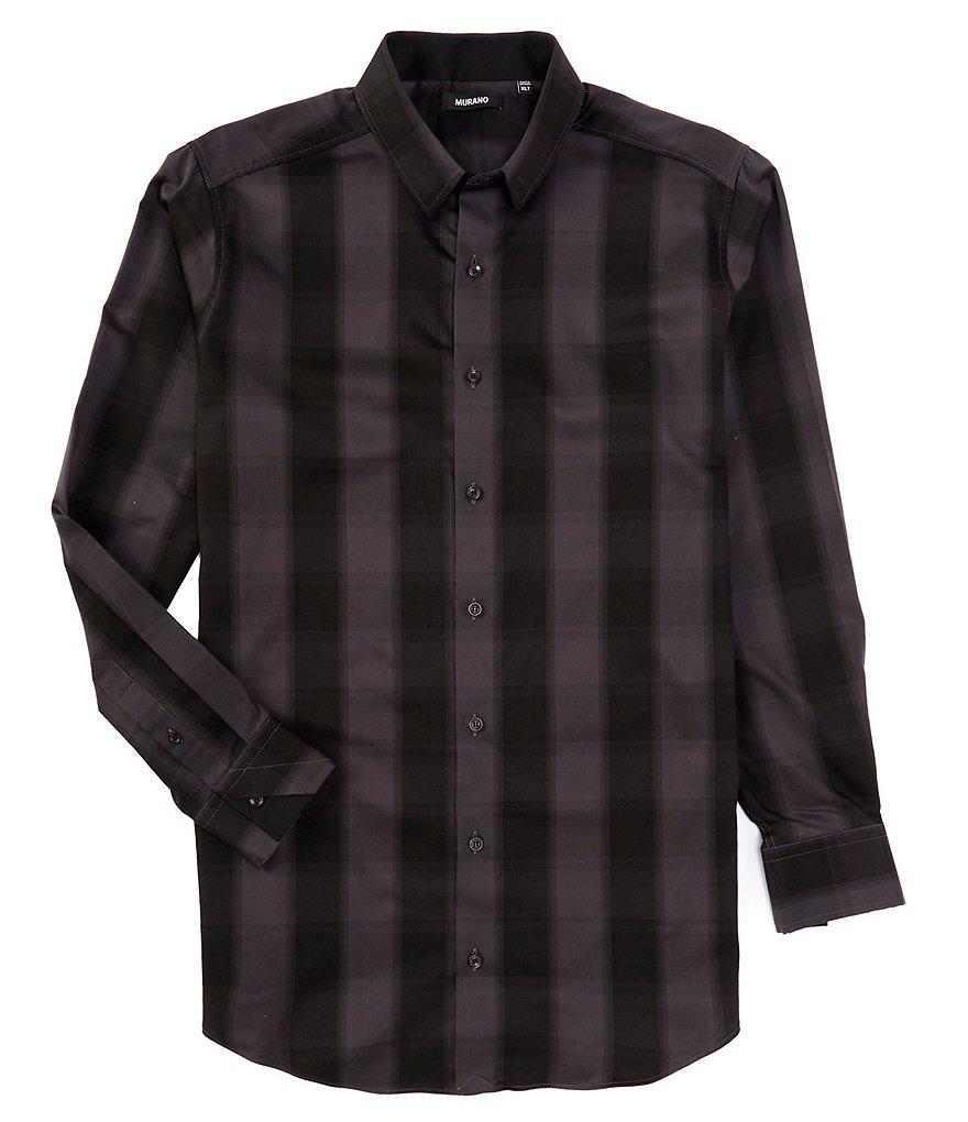 From Murano, this woven shirt features: Buffalo plaid Slim fit Point collar Long sleeves Button-front closure Curved hem Sateen fabric 100% cotton Machine wash warm/tumble dry Imported.