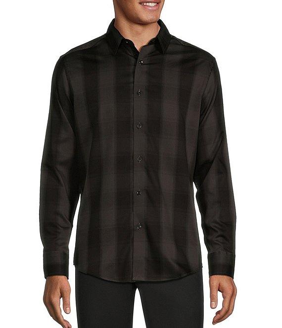 Murano Big & Tall Slim Fit Buffalo Plaid Sateen Long Sleeve Woven Shirt